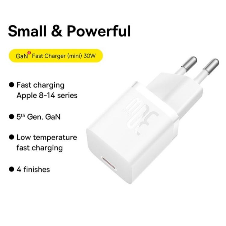 Baseus Incarcator Retea GaN5 Mini Fast Charger, USB-C, 30W, Alb