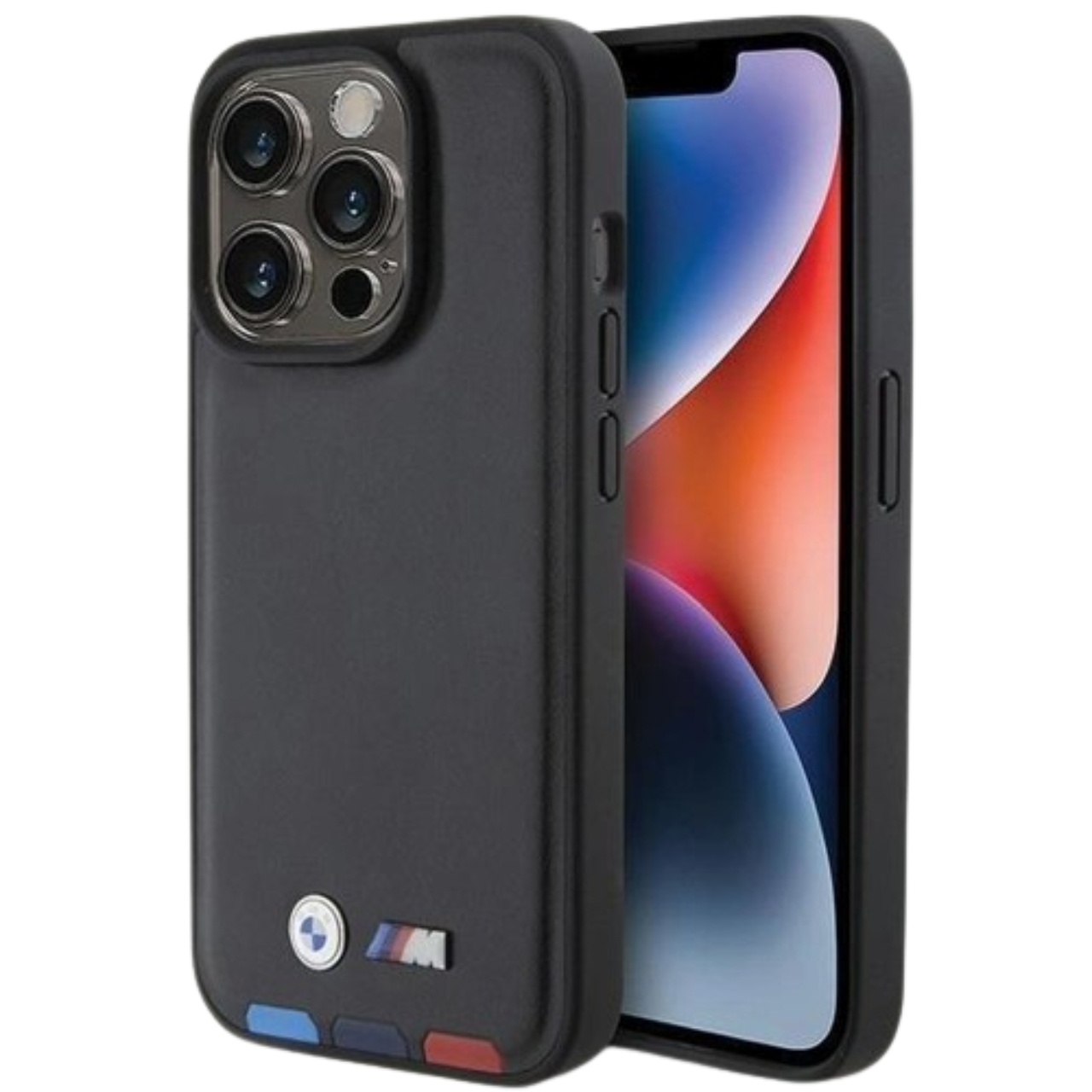 BMW Husa Leather Stamp Tricolor iPhone 15 Pro Negru