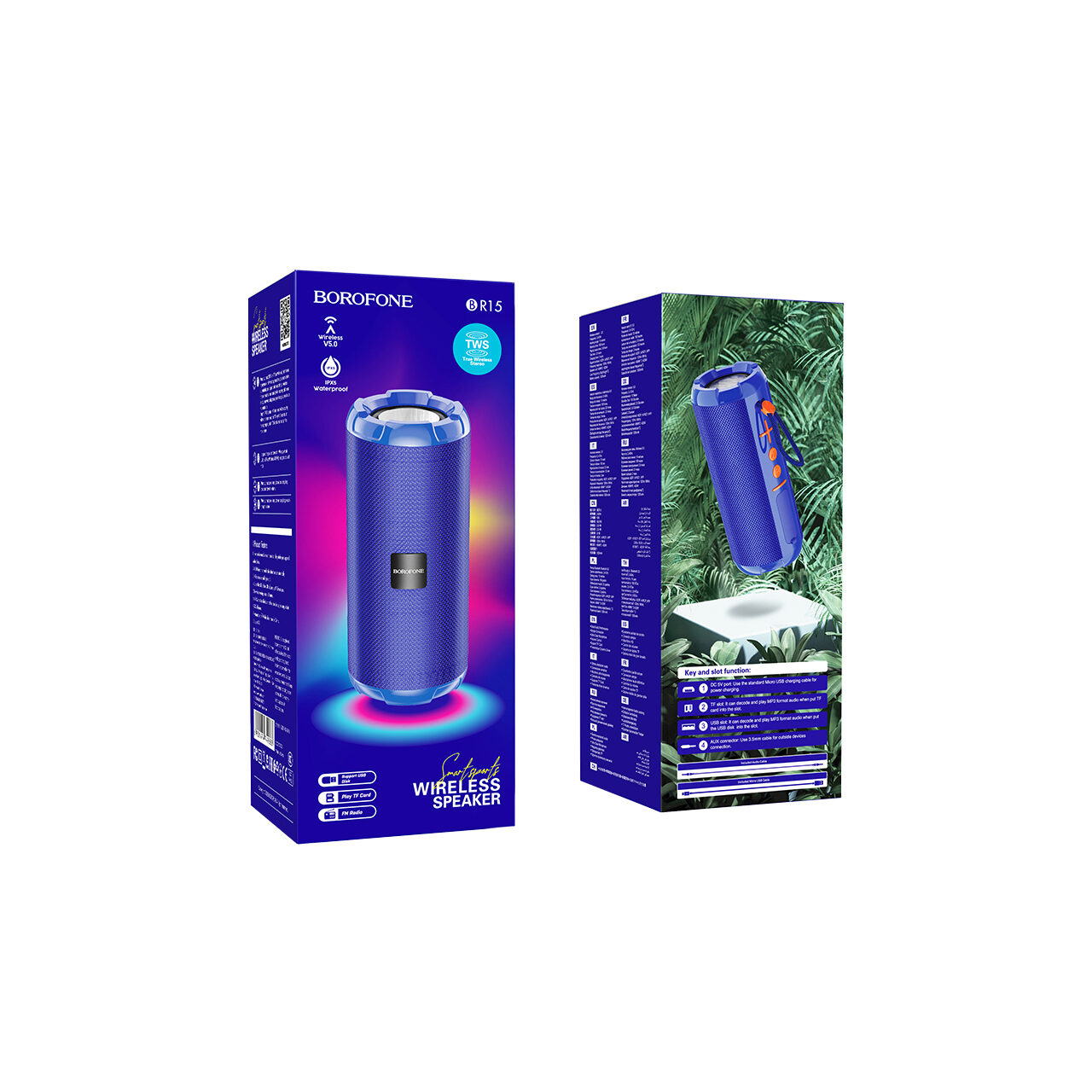 - suport: Bluetooth, FM, TF, USB, AUX, TWS