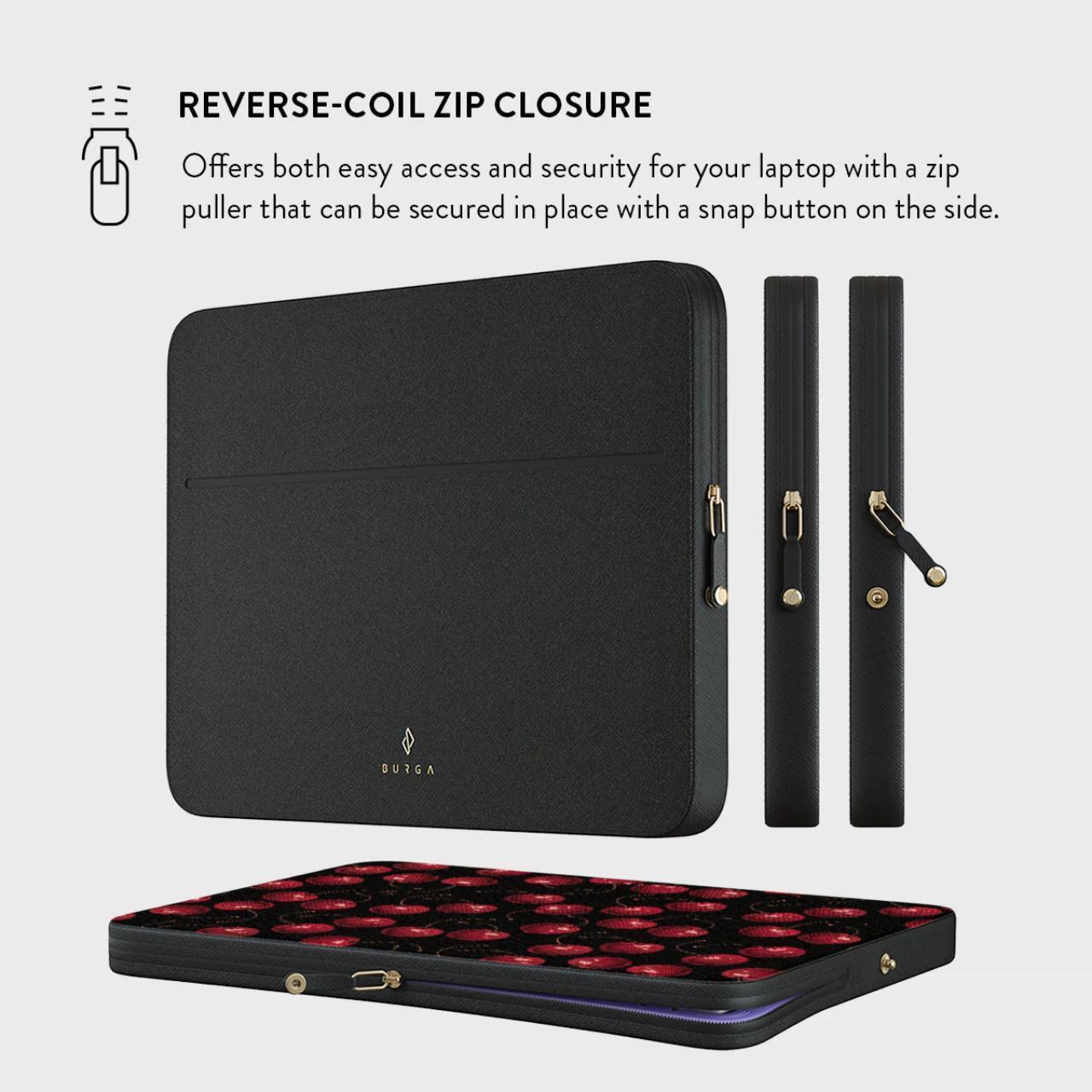 Husa antisoc Laptop 14 inch Cherrybomb ofera protectie de nivel militar si un design elegant. Realizata din piele vegana saffiano, rezistenta la apa si zgarieturi, cu tehnologie CloudShield si captuseala moale din microfibra, iti pastreaza laptopul in siguranta si cu stil.