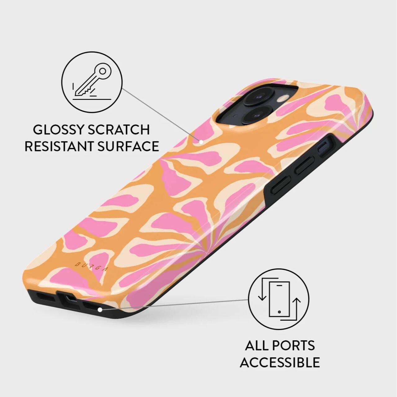 Husa Dual Layer Aloha pentru iPhone 15 Plus de la Burga are un model unic si colorat, iar interiorul din silicon va protejeaza dispozitivul in timpul caderilor in timp ce ramele inaltate de 2 mm ofera protectie a ecranului si a camerei.