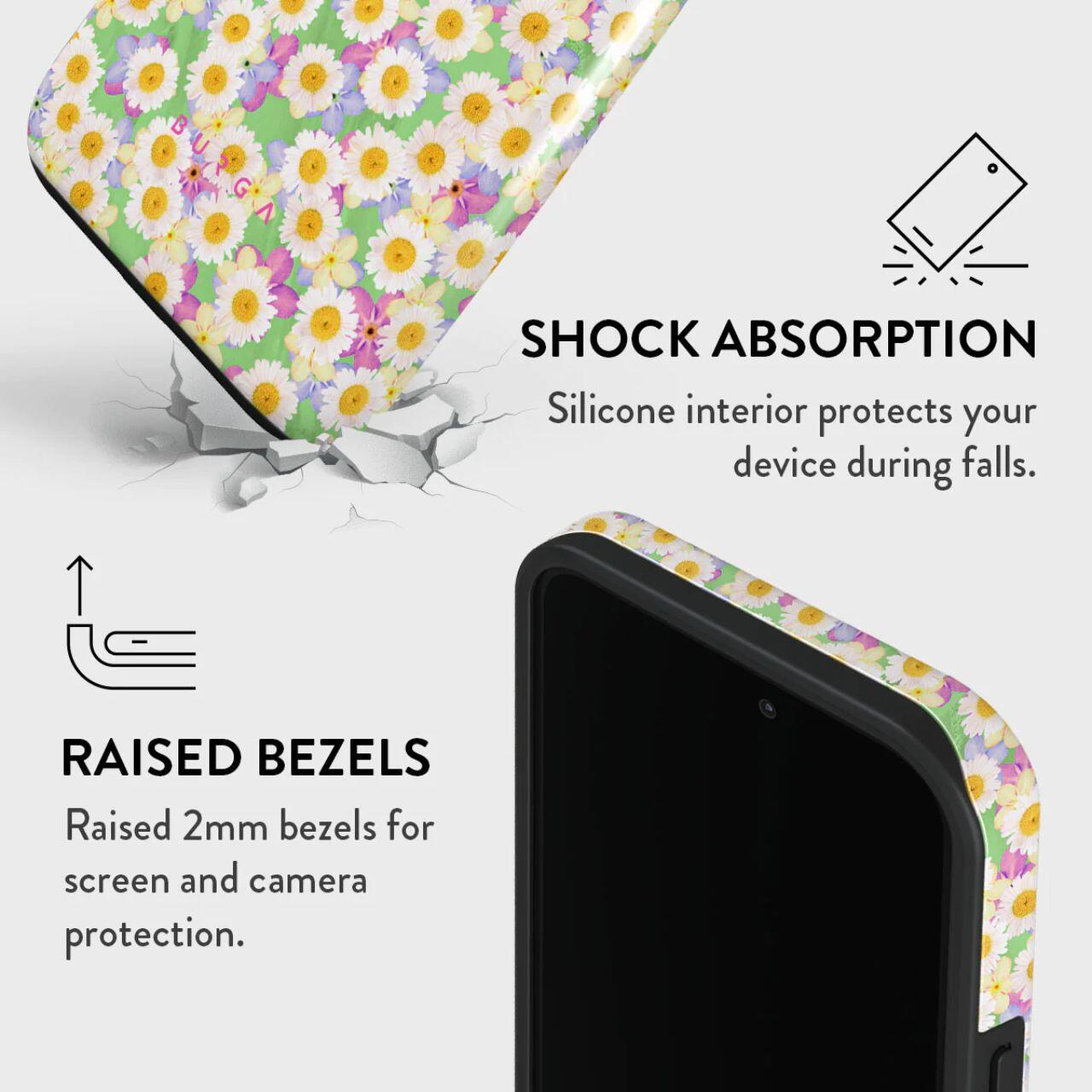 Husa Dual Layer Be Kind pentru iPhone 15 Pro de la Burga are un model unic si colorat, iar interiorul din silicon va protejeaza dispozitivul in timpul caderilor in timp ce ramele inaltate de 2 mm ofera protectie a ecranului si a camerei.
