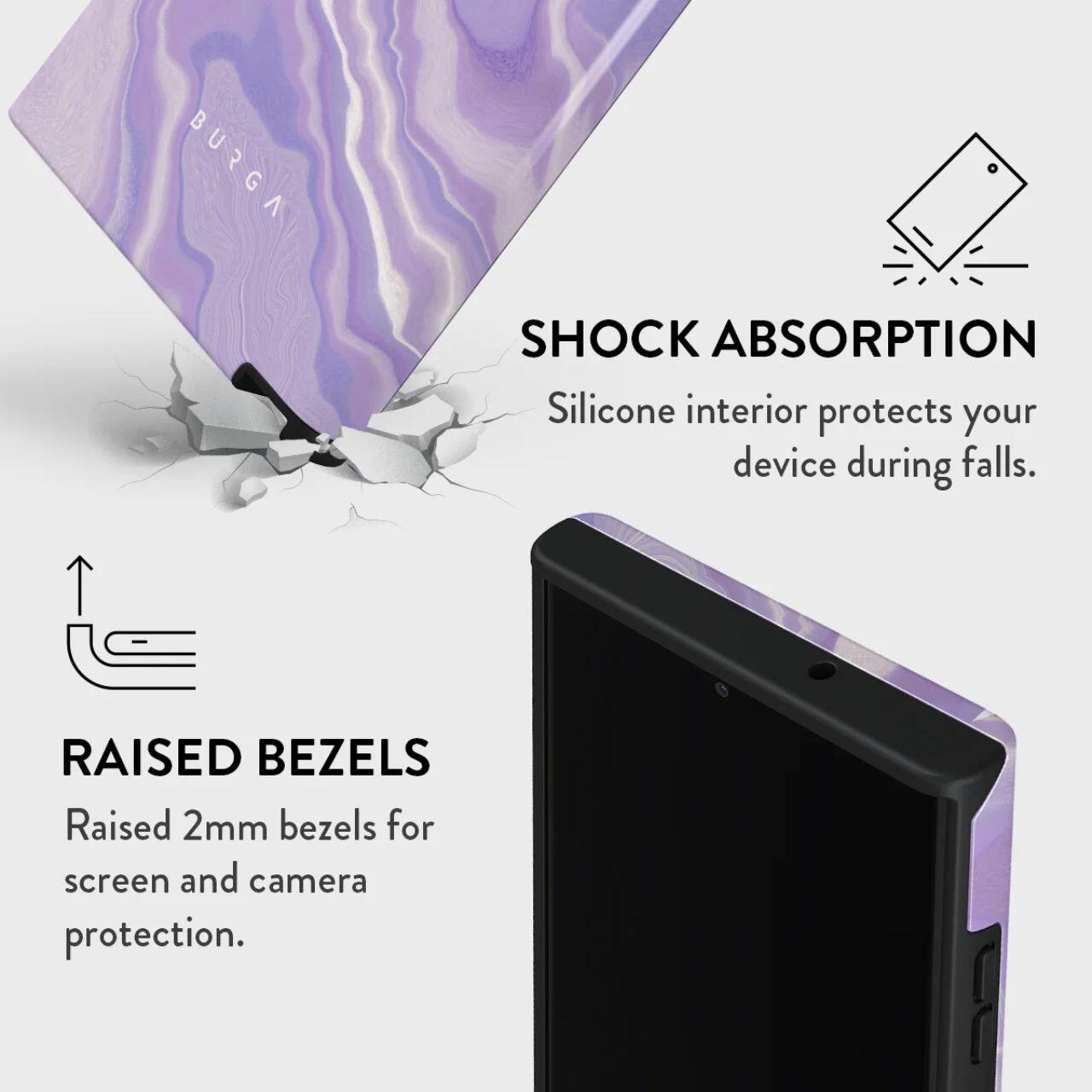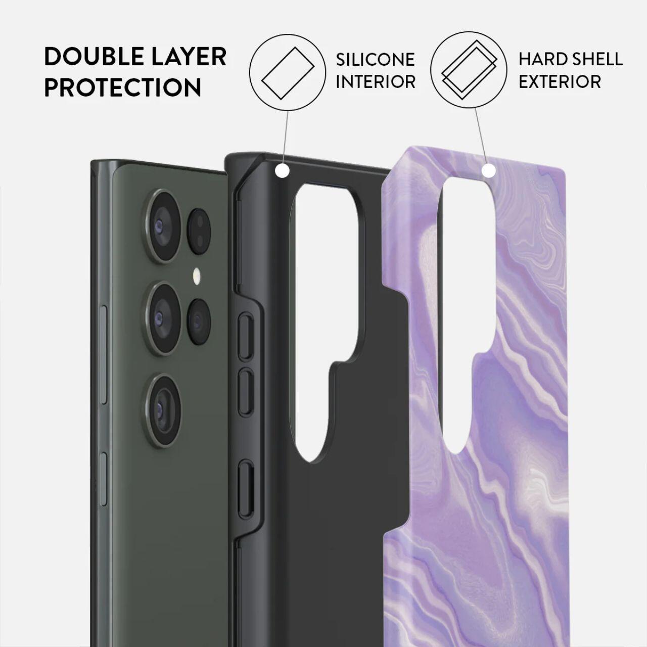 Husa Dual Layer Cliche pentru Samsung Galaxy S23 Ultra de la Burga cu designul valuri moi de lavanda va deveni preferatul tau, facandu-l insotitorul pastel perfect pentru telefonul tau.