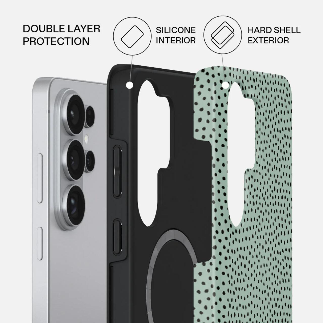 Husa Dual Layer Magnetic Mint Gelato Samsung Galaxy S26 Ultra de la Burga, are un design unic si colorat, iar interiorul din silicon va protejeaza dispozitivul in timpul caderilor, in timp ce ramele inaltate de 2 mm ofera protectie suplimentara pentru ecran si camera.