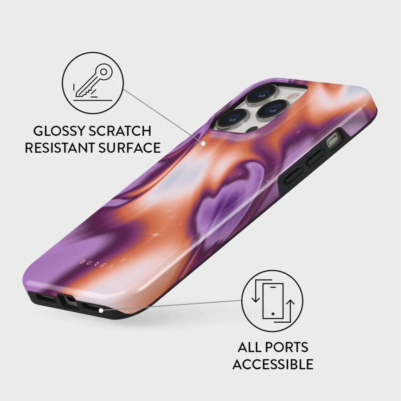 Husa Dual Layer Nebula iPhone 14 Pro de la Burga are un model unic si colorat, iar interiorul din silicon va protejeaza dispozitivul in timpul caderilor in timp ce ramele inaltate de 2 mm ofera protectie a ecranului si a camerei.