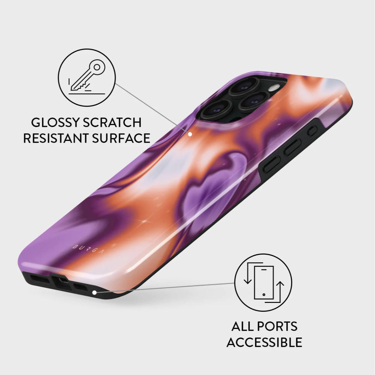 Husa Dual Layer Nebula iPhone 15 Pro de la Burga are un model unic si colorat, iar interiorul din silicon va protejeaza dispozitivul in timpul caderilor in timp ce ramele inaltate de 2 mm ofera protectie a ecranului si a camerei.