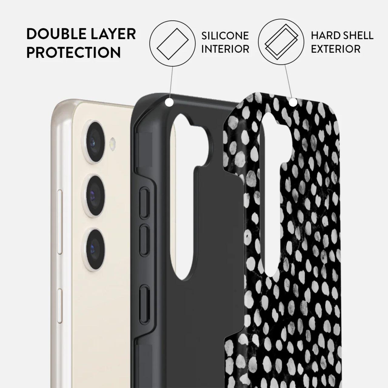 Pastreaza o parte din cerul noptii in buzunar cu husa pentru telefon pentru Samsung Galaxy S23, inspirata de cerul de deasupra noastra. Modelul cu puncte elegant gasit pe carcasa este o necesitate in colectia oricarui iubitor de accesorii.