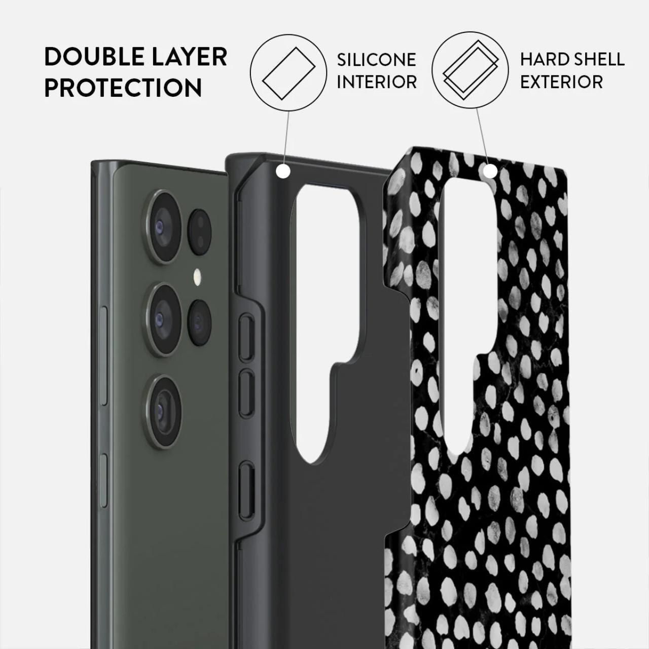 Husa Dual Layer Night Sky de la Burga este proiectata in mod unic cu o structura hibrid dual-strat. Stratul interior de TPU silicon si o carcasa exterioara de PC rezistenta, de calitate militara, ofera absorbtie la soc, durabilitate si aparare robuza impotriva zgarieturilor in timp ce ramele inaltate de 2 mm ofera protectie a ecranului si a camerei.