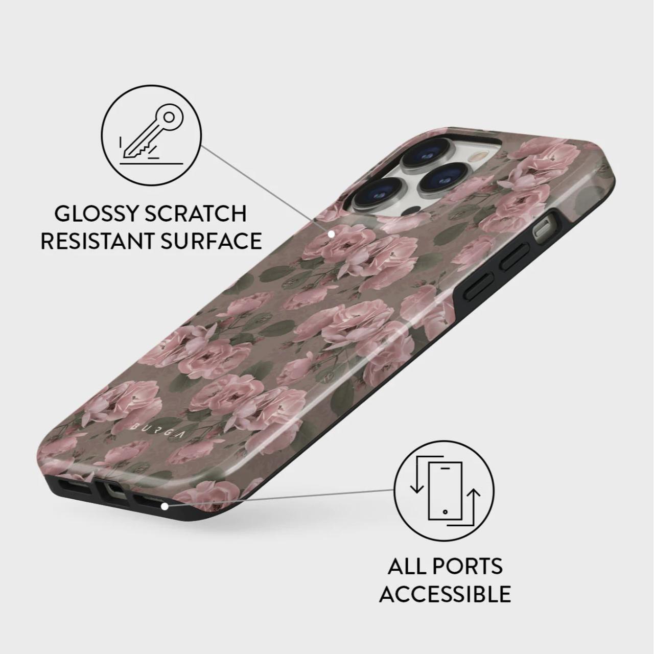 Husa Dual Layer Vintage Glamour iPhone 14 Pro Max de la Burga are un model unic si colorat, iar interiorul din silicon va protejeaza dispozitivul in timpul caderilor in timp ce ramele inaltate de 2 mm ofera protectie a ecranului si a camerei.