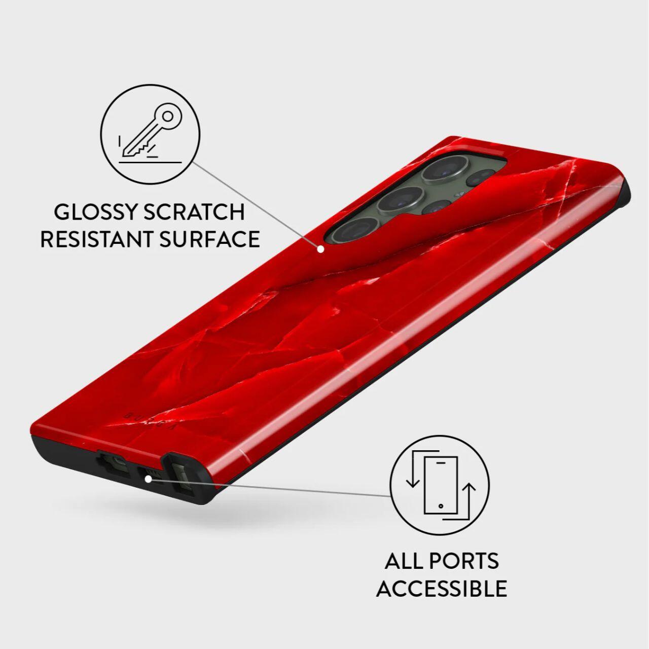 Husa pentru telefon Wild Blaze Samsung Galaxy S23 Ultra are un design izbitor de marmura rosu stralucitor, care este garantat sa adauge inversunare si o nota de culoare dispozitivului tau iubit.