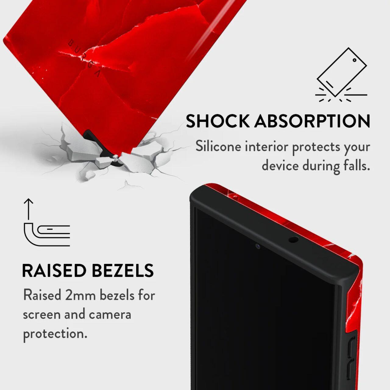 Husa Dual Layer Wild Blaze de la Burga este proiectata in mod unic cu o structura hibrid dual-strat. Stratul interior de TPU silicon si o carcasa exterioara de PC rezistenta, de calitate militara, ofera absorbtie la soc, durabilitate si aparare robuza impotriva zgarieturilor in timp ce ramele inaltate de 2 mm ofera protectie a ecranului si a camerei.