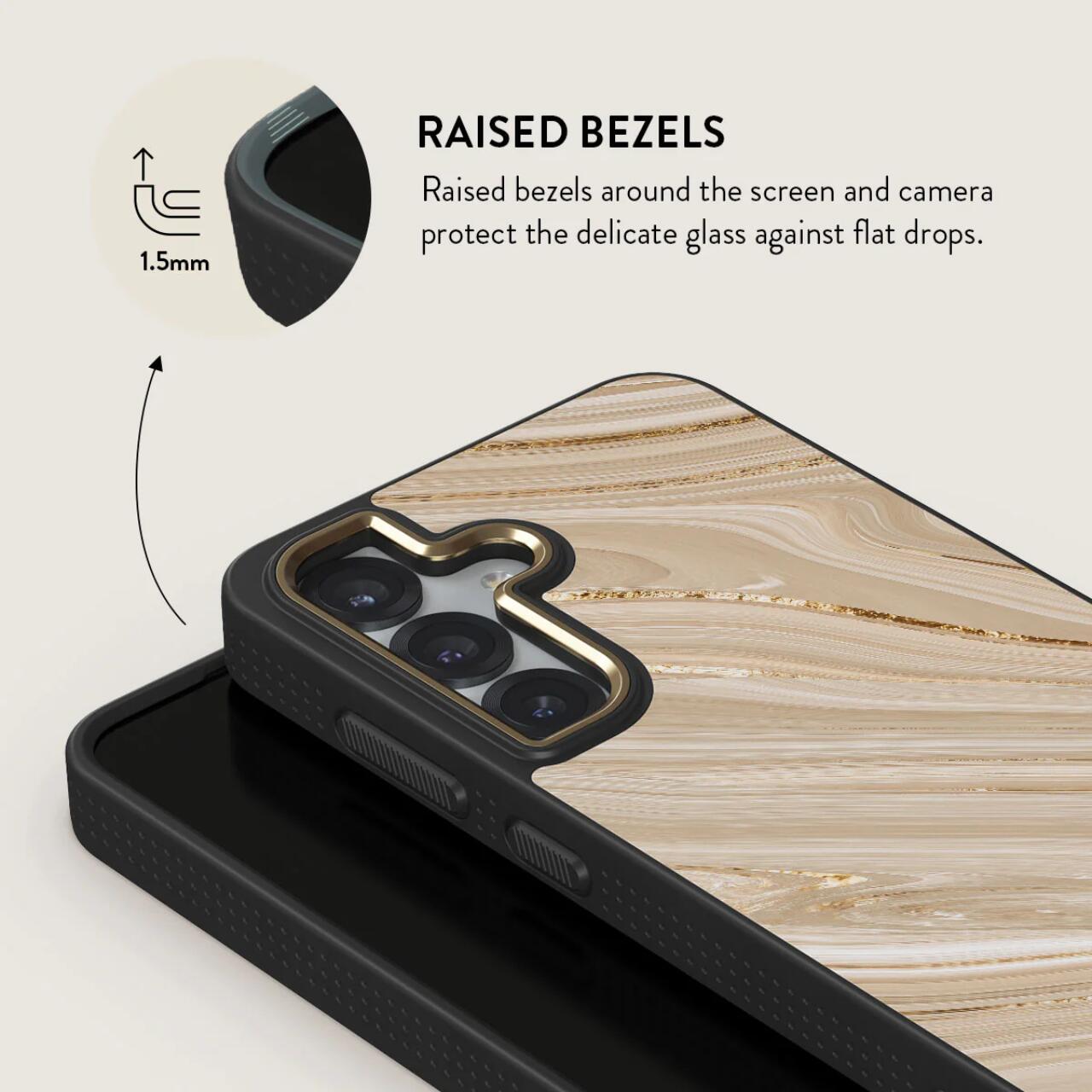 Husa are rame ridicate de 1,5 mm atat in jurul ecranului, cat si al camerei pentru a proteja sticla delicata de picaturi, iar cu designul nostru de protectie subtire, ecranul si obiectivul camerei nu vor atinge niciodata suprafetele plane.