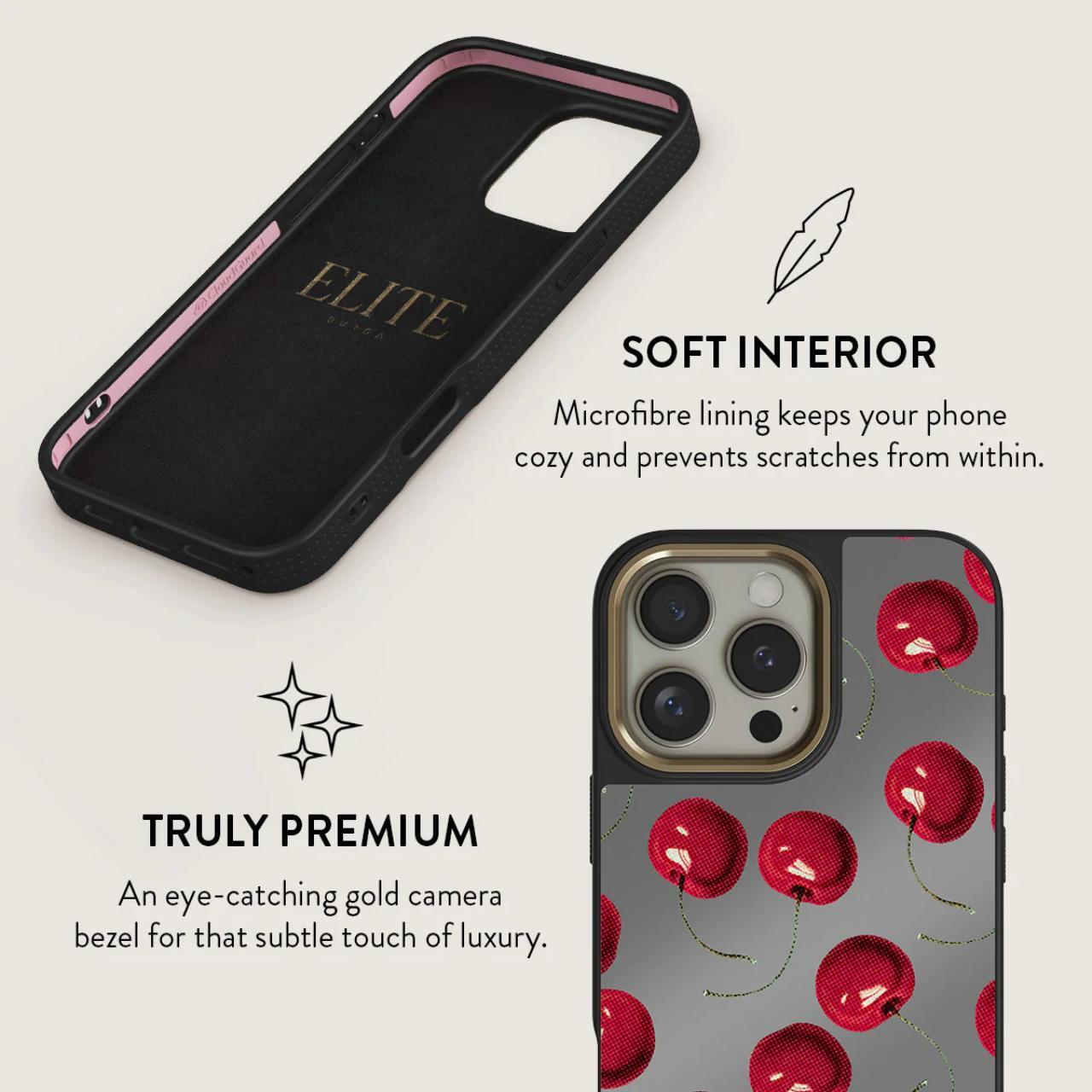 Husa Elite Mirror Magsafe Gold Cherrybomb pentru iPhone 16 Pro Max de la Burga construita pentru absorbtia socurilor si aparare, dispune de tehnologia de ultima ora CloudGuard si cu un finisaj elegant, asemanator oglinzii. Iar interiorul din microfibra pastreaza telefonul confortabil si previne zgarieturile.