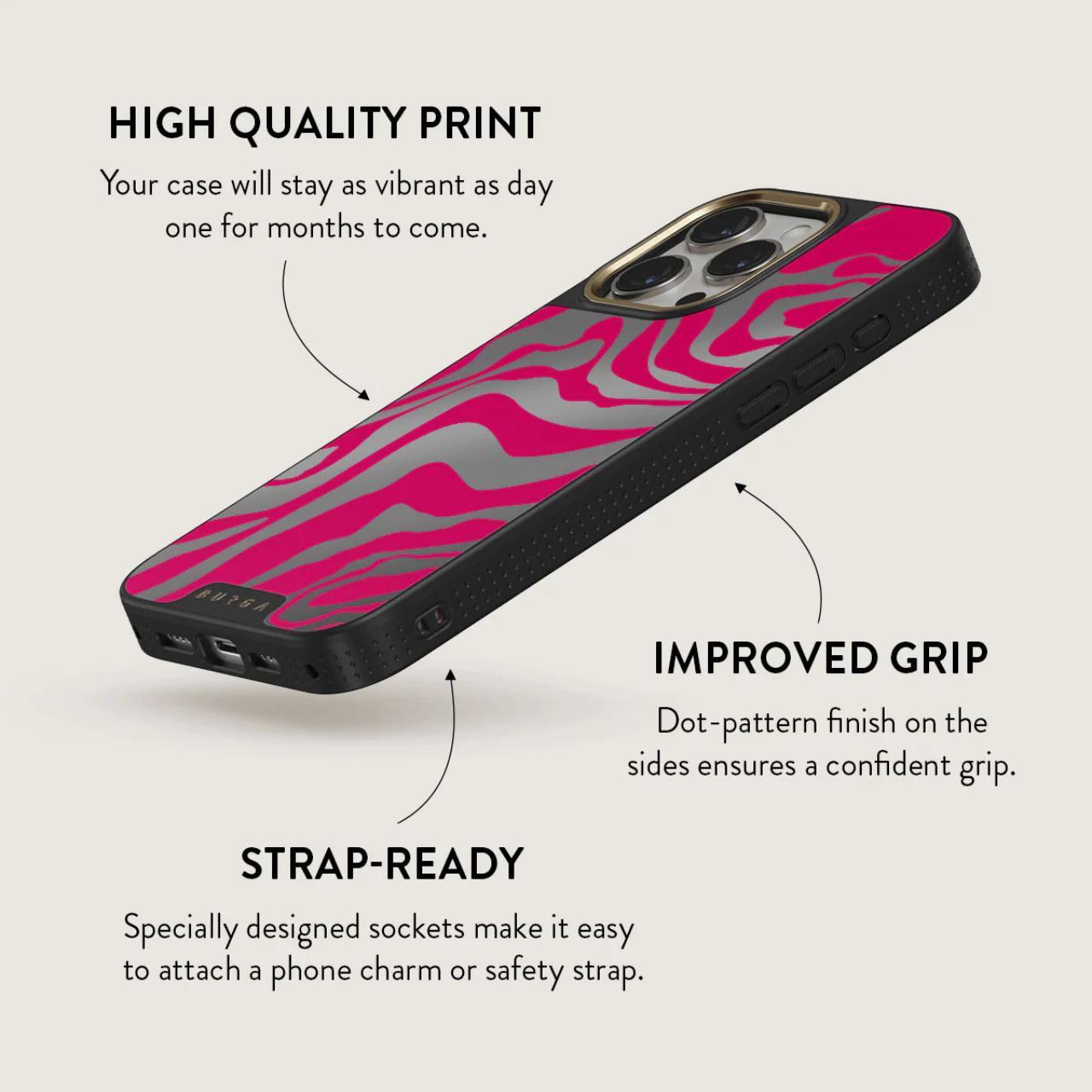 Siren — un design strălucitor si îndrăzneț pentru iPhone iPhone 15 Pro Max,deoarece modelul zebră se întâlnește cu rozul strălucitor și creează un duo care merită cu adevărat un spectacol pe podium