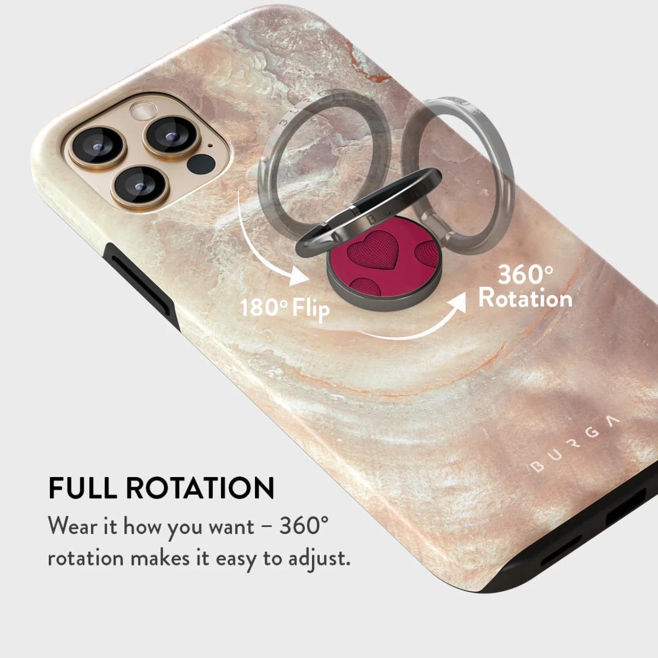 Inel pentru telefon de la Burga, este realizat din materiale de calitate precum aliaj de zinc si otel inoxidabil fiind ultra-subtire si usor. Aliajul de zinc are o rezistenta buna la abraziune pentru a evita ruperea la cadere, iar otelul inoxidabil este robust si poate tine ferm inelul devenind un suport bun pe termen lung.