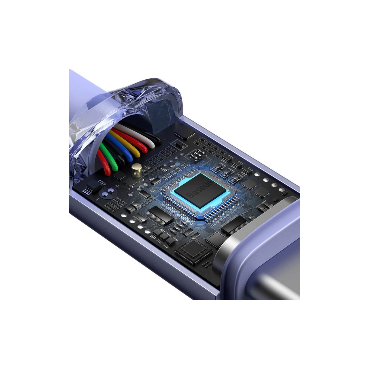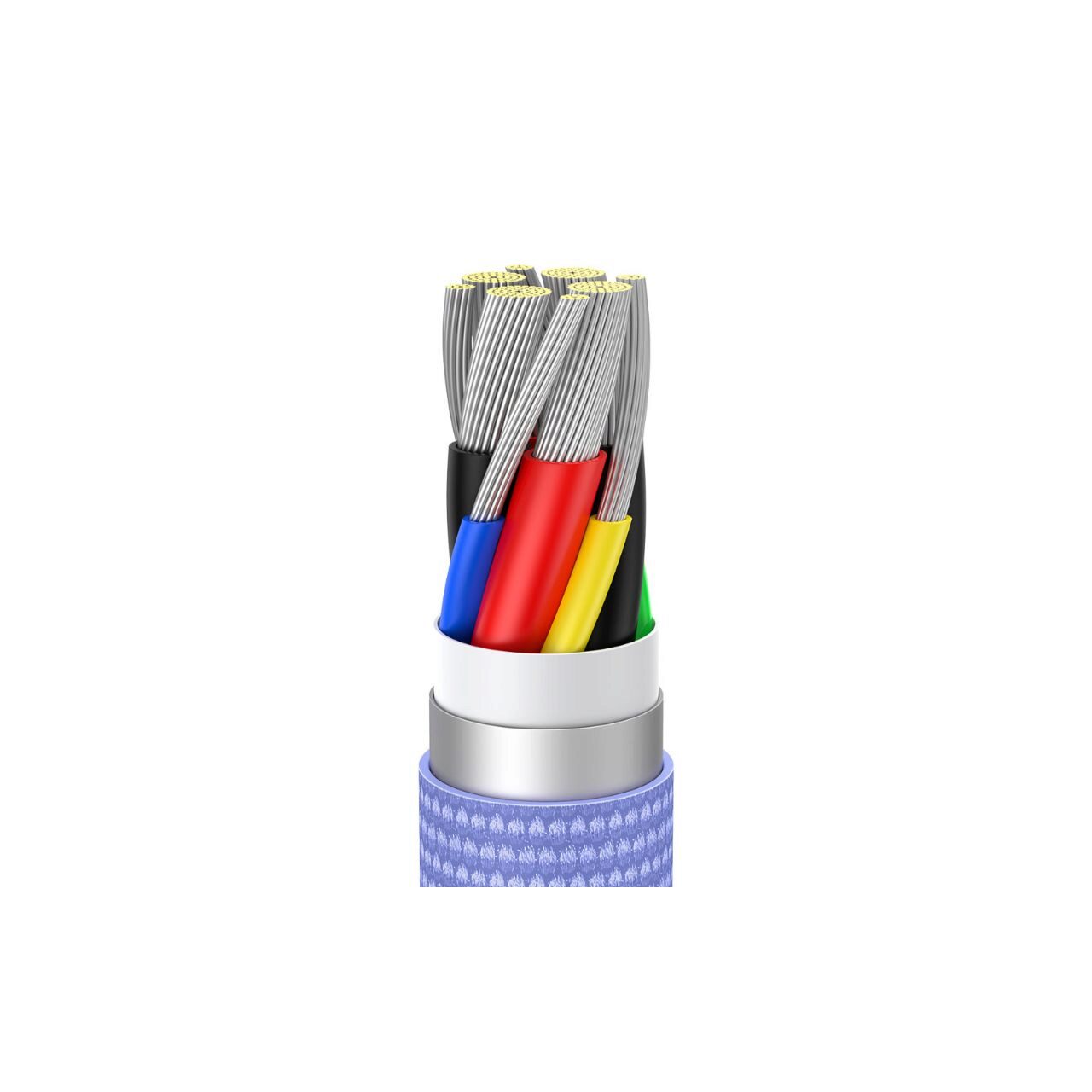 Capacul impletit al seriei USB Type C - USB Type C Baseus Crystal Shine cu o textura durabila are o intarire suplimentara acolo unde mufa se conecteaza la cablu, deci este rezistent la indoire si intindere. In interior exista un cablu de cupru cu 8 fire, care datorita unui cip inteligent nu se va incalzi nici macar in timpul incarcarii si transferului de date simultan.