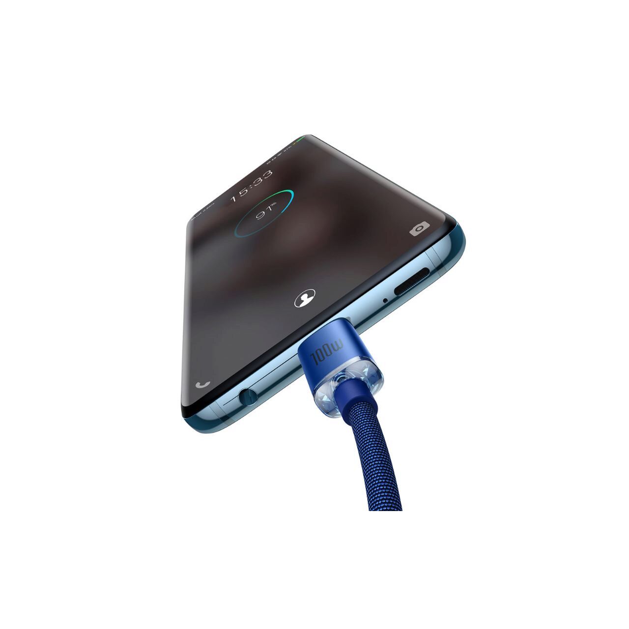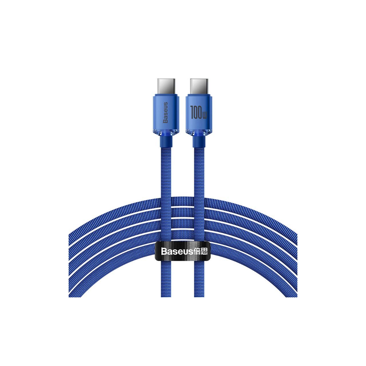 Baseus Cablu Crystal Shine Type-C la Type-C Albastru (100W, 2m, impletitura nylon)