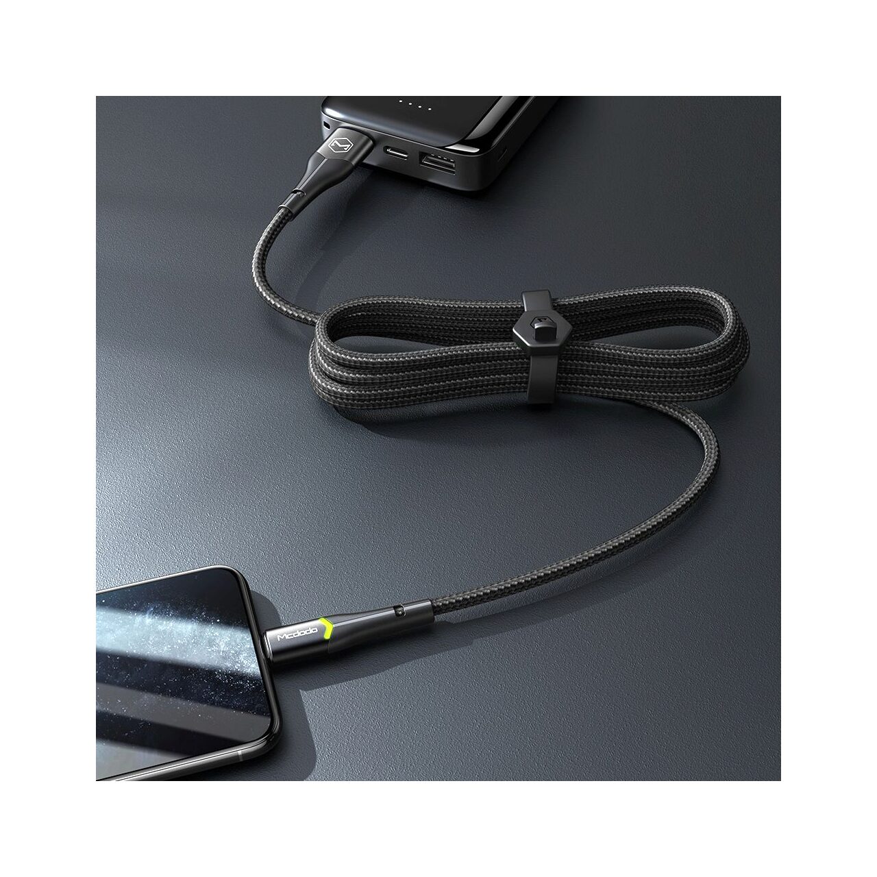 Cablu Magnificence Series Lightning de la Mcdodo este acoperit cu impletitura de nylon, iar mufele au o carcasa din aliaj aluminiu pentru o rezistenta sporita la utilizarea de zi cu zi.