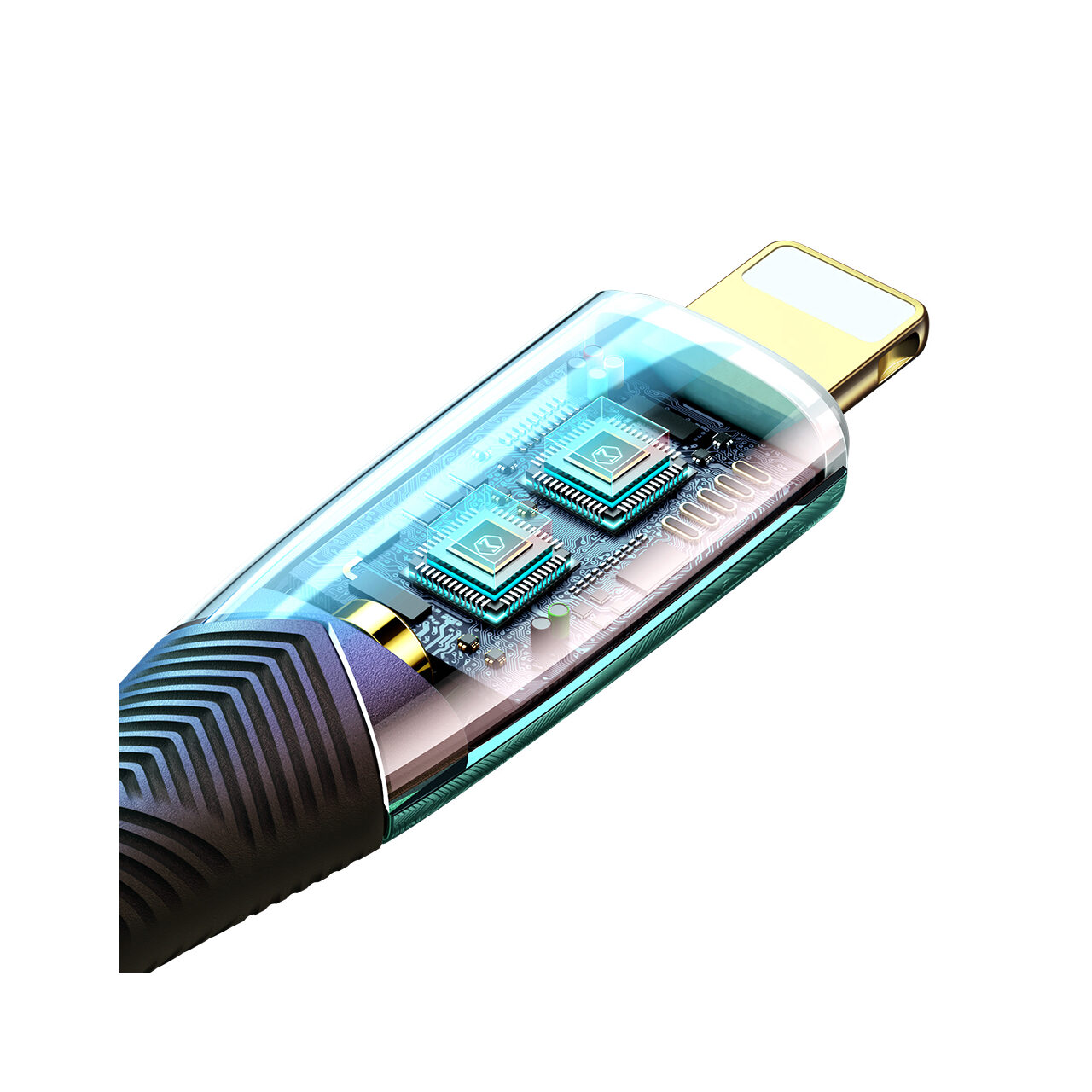 * 1x Cablu Shark Series Lightning Green (1.2m, 3A, led indicator, impletitura Nylon)
