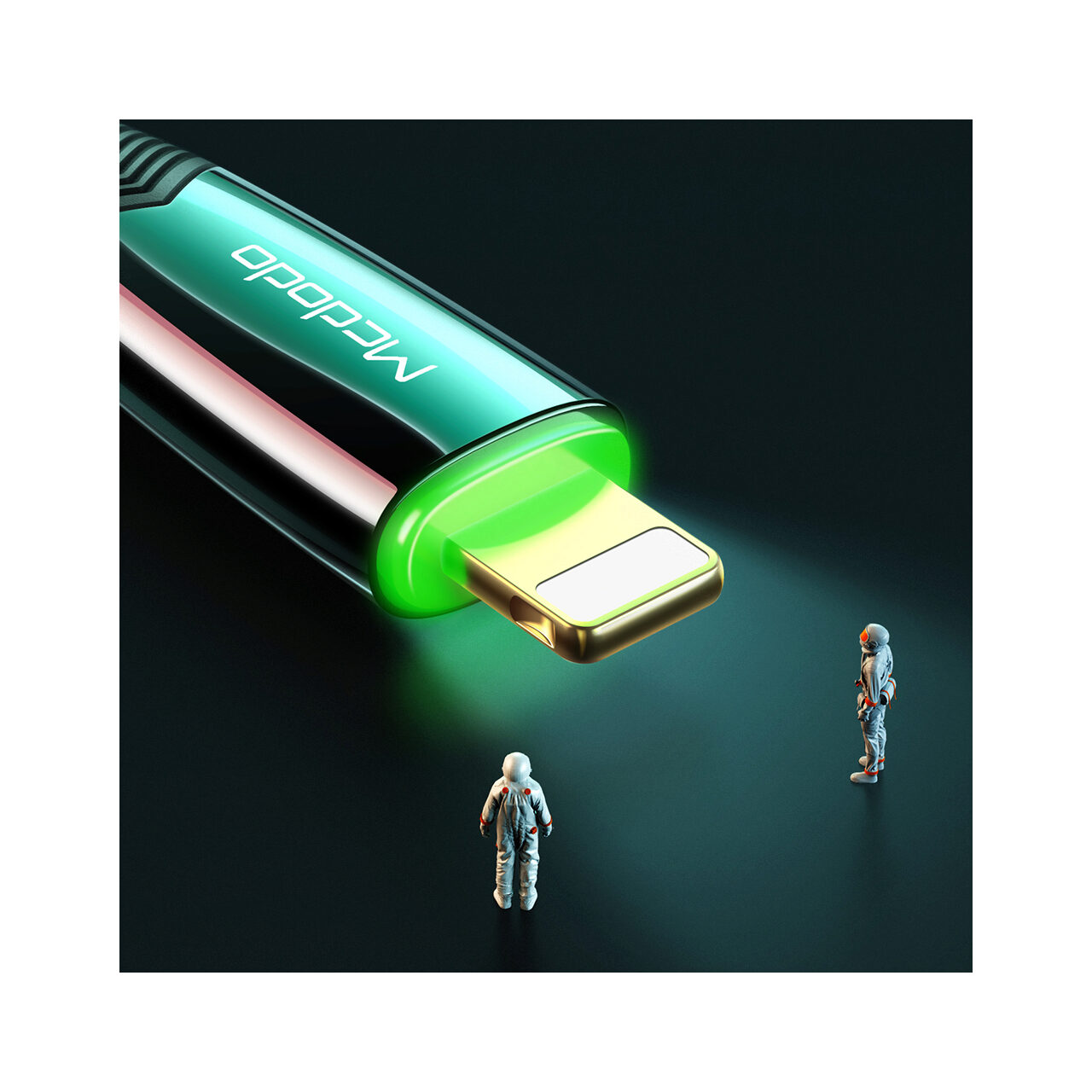Mcdodo Cablu Shark Series Lightning Green (1.2m, 3A, led indicator, impletitura nylon)-T.Verde 0.1 lei/buc