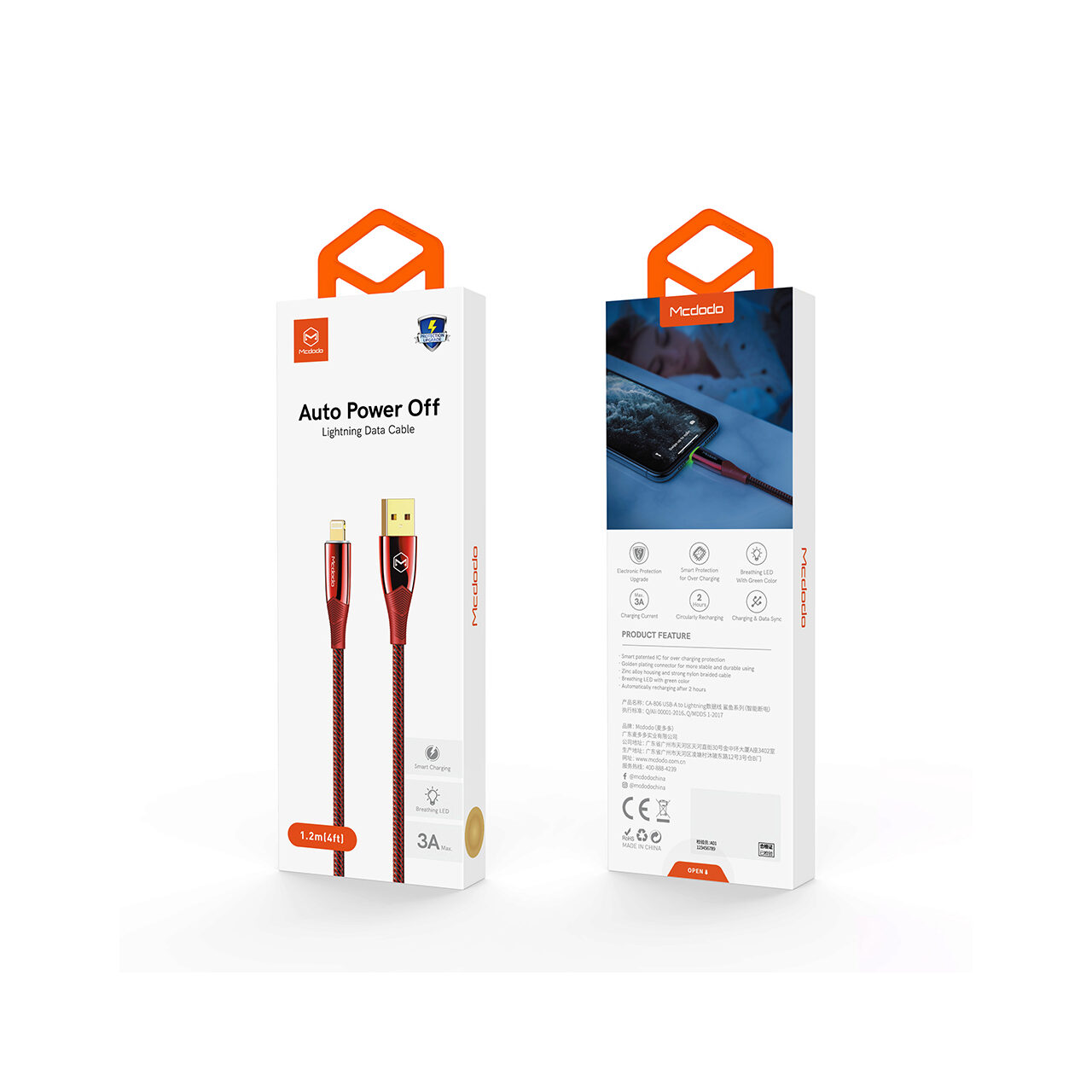Cablul incarcare cu cip inteligent, va deconecta in mod automat alimentarea dispozitivului in momentul in care acumlatorul va fi incarcat. Datorita acestei functii acumulatorul iPhone-ului/iPad-ului vor fi protejate impotriva supraincarcarii.