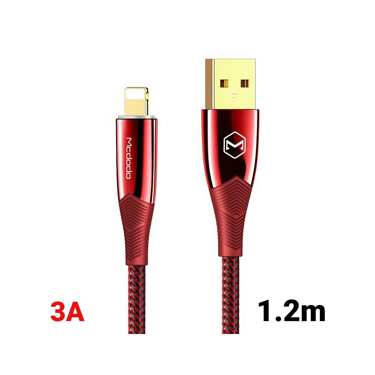 Mcdodo Cablu Shark Series Lightning Red (1.2m, 3A, led indicator, impletitura nylon)