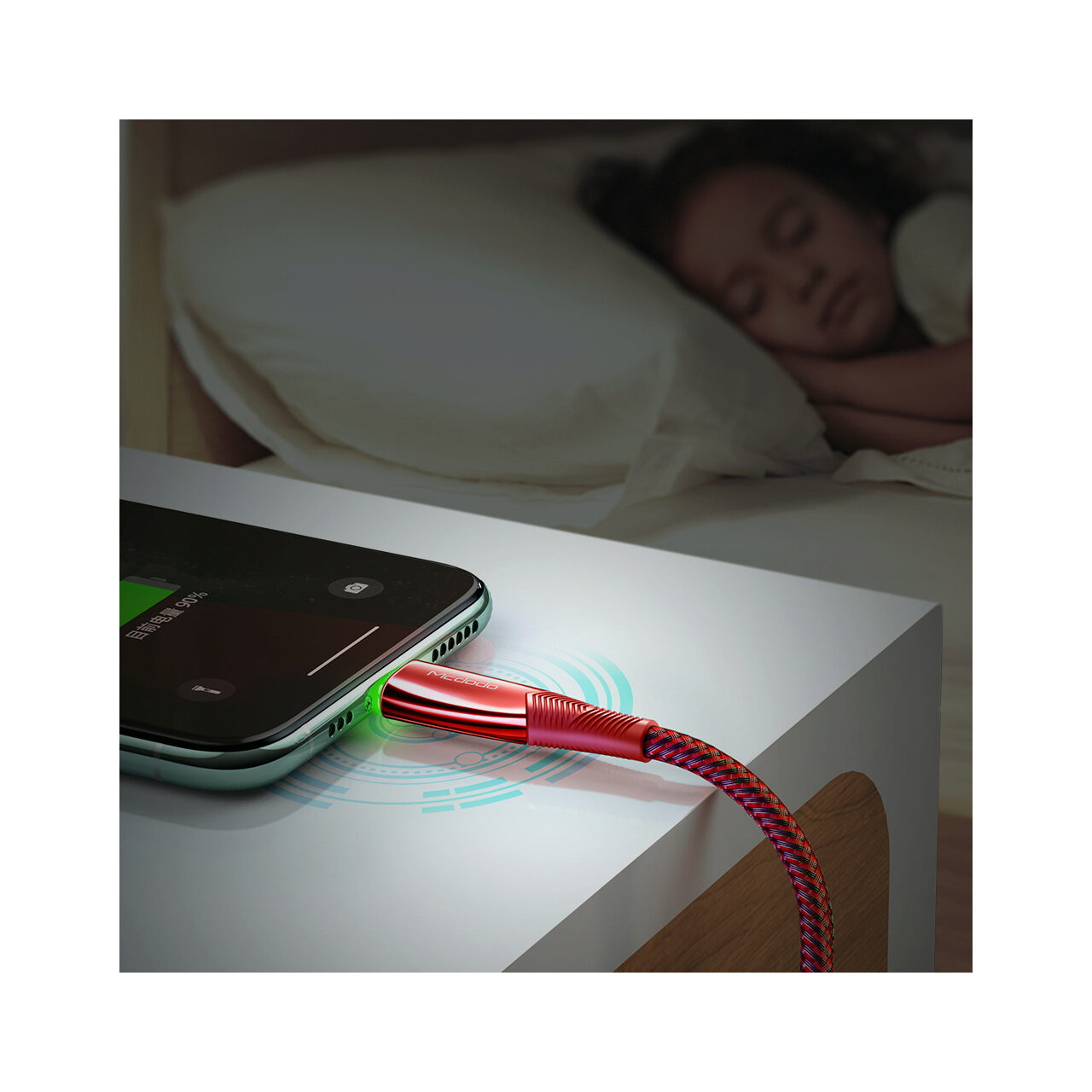 Cablul incarcare cu cip inteligent, va deconecta in mod automat alimentarea dispozitivului in momentul in care acumlatorul va fi incarcat. Datorita acestei functii acumulatorul iPhone-ului/iPad-ului vor fi protejate impotriva supraincarcarii.