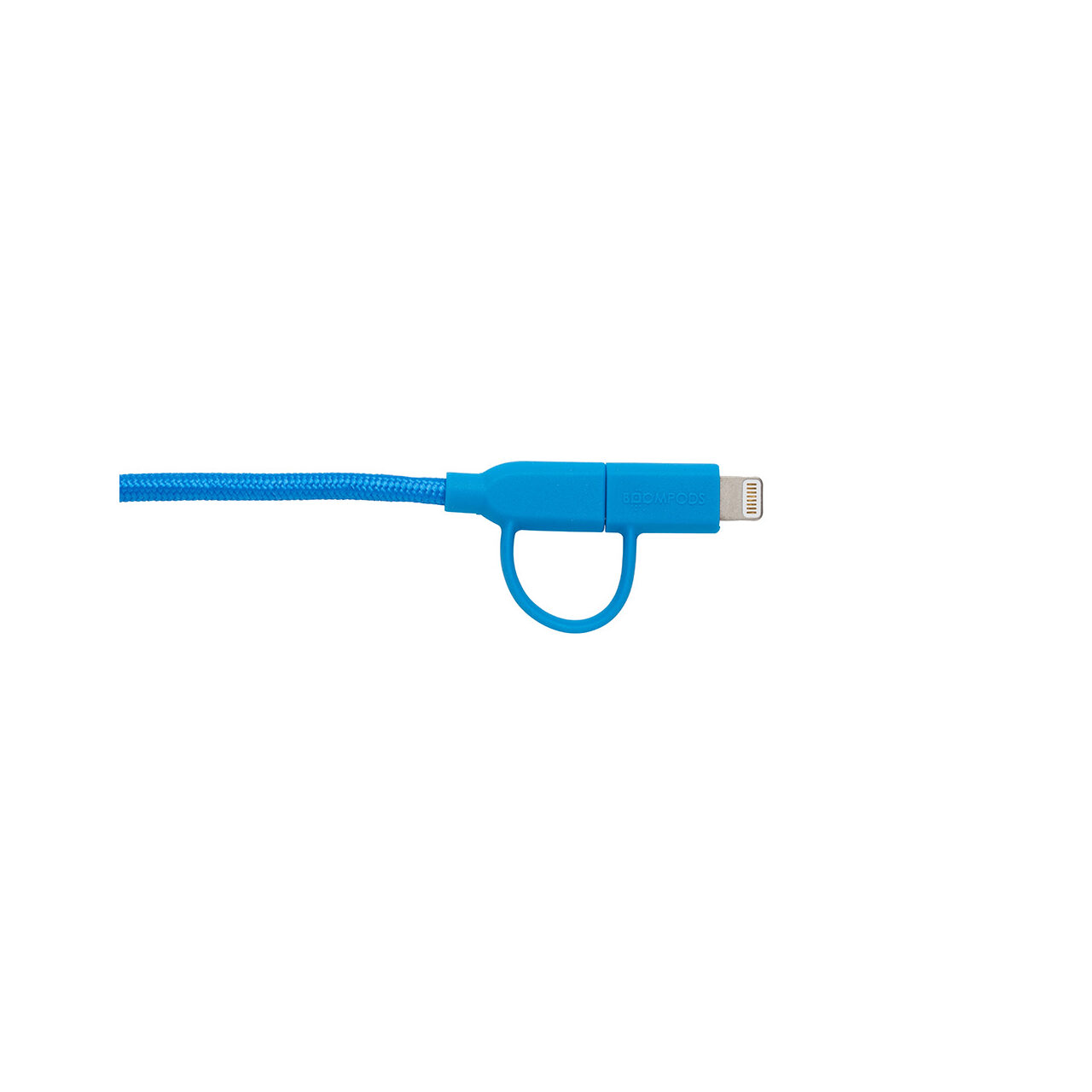 Cablu MicroUSB & Lightning MFI Boompods Duo Blue (1m, impletitura textila)
