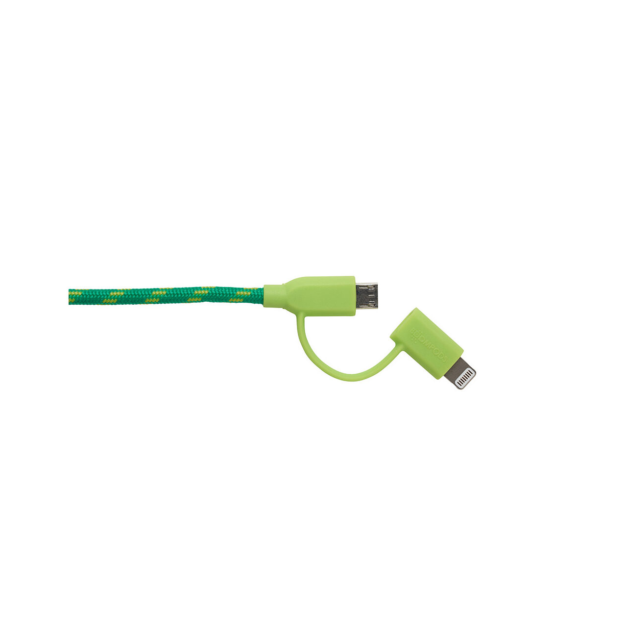Cablu MicroUSB & Lightning MFI Boompods Duo Green (1m, impletitura textila)