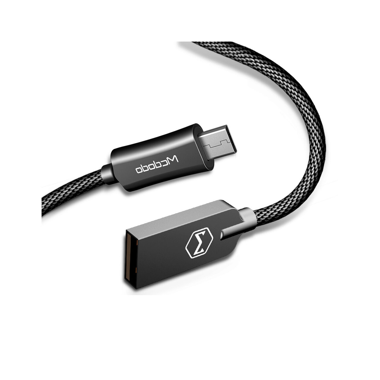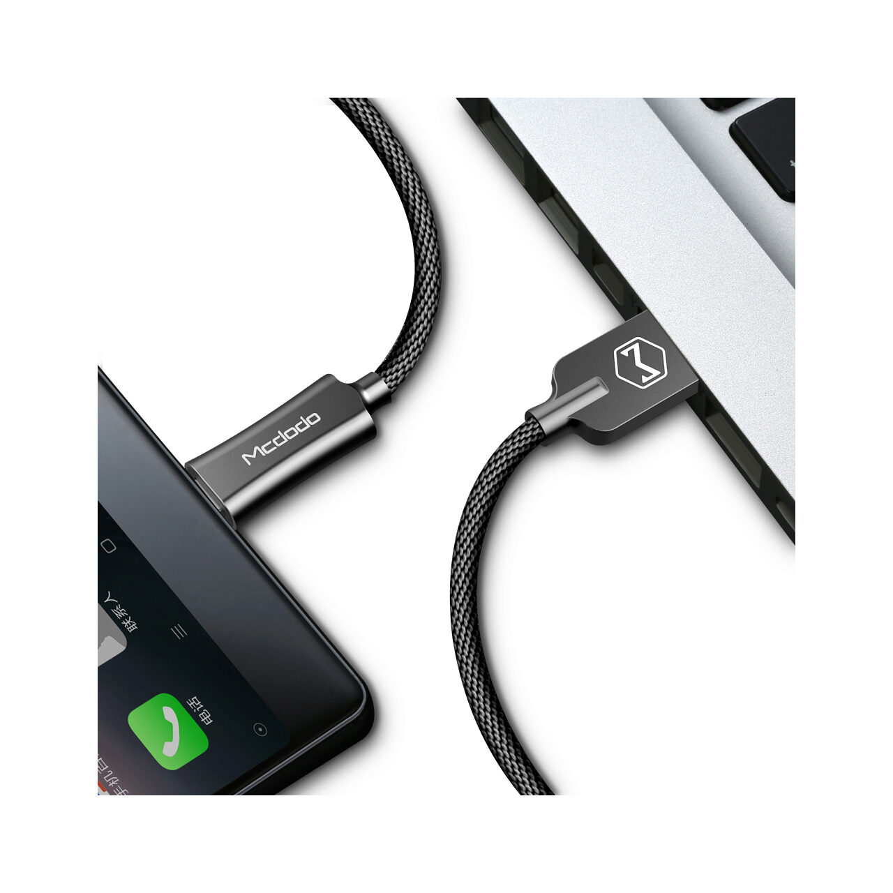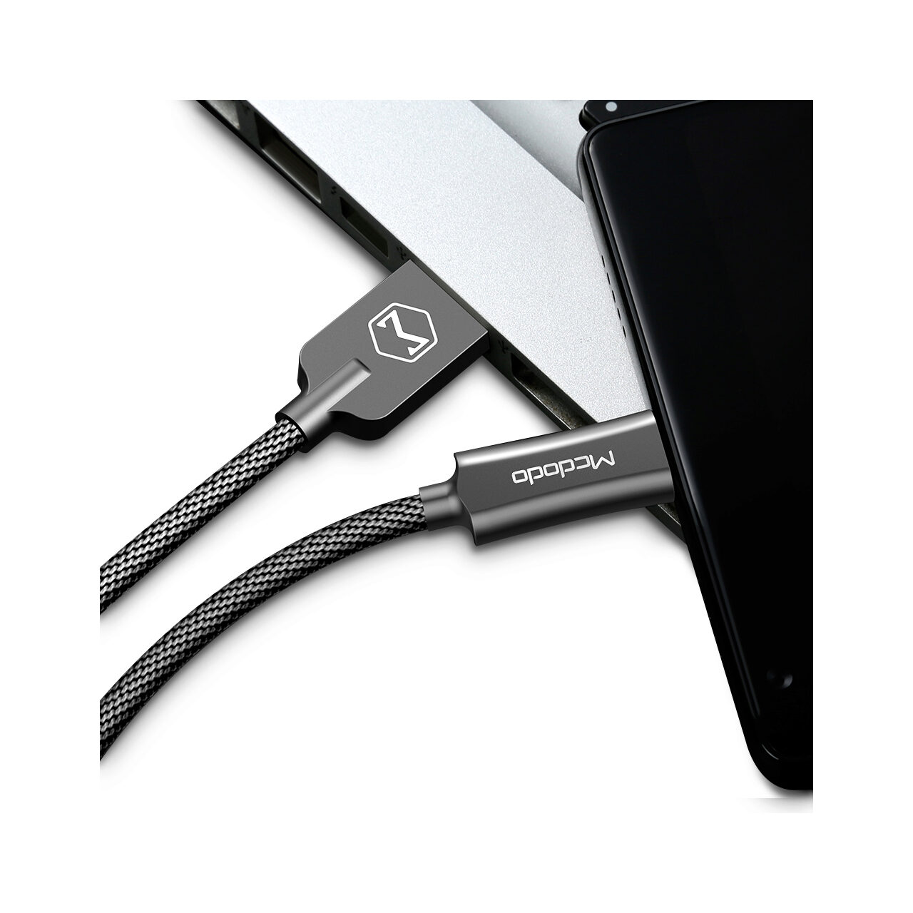 Cablul Knight MicroUSB de la Mcdodo are lungimea de 1.5 metri, este acoperit cu o impletitura de nylon, iar mufele au o carcasa din aliaj de zinc ce ofera un aspect elegant dar si o rezistenta sporita la utilizarea de zi cu zi.