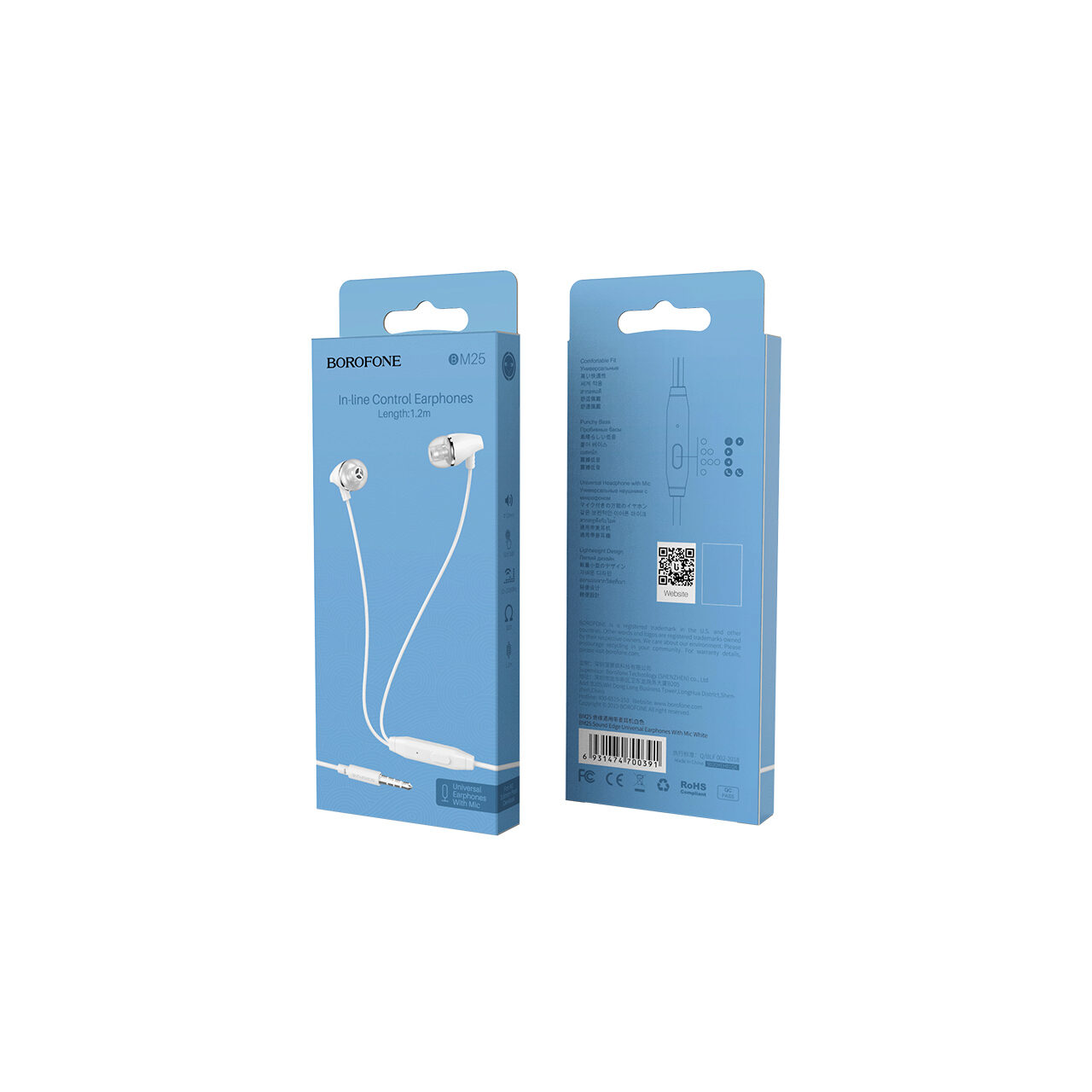 Casti In-Ear Borofone BM25 Sound Edge cu microfon, Jack 3.5mm, Alb