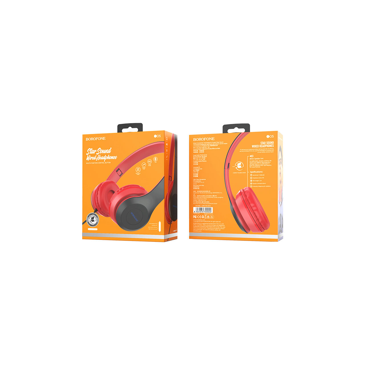 Casti Over-Ear Borofone BO5 Star cu microfon, Jack 3.5mm, Rosu