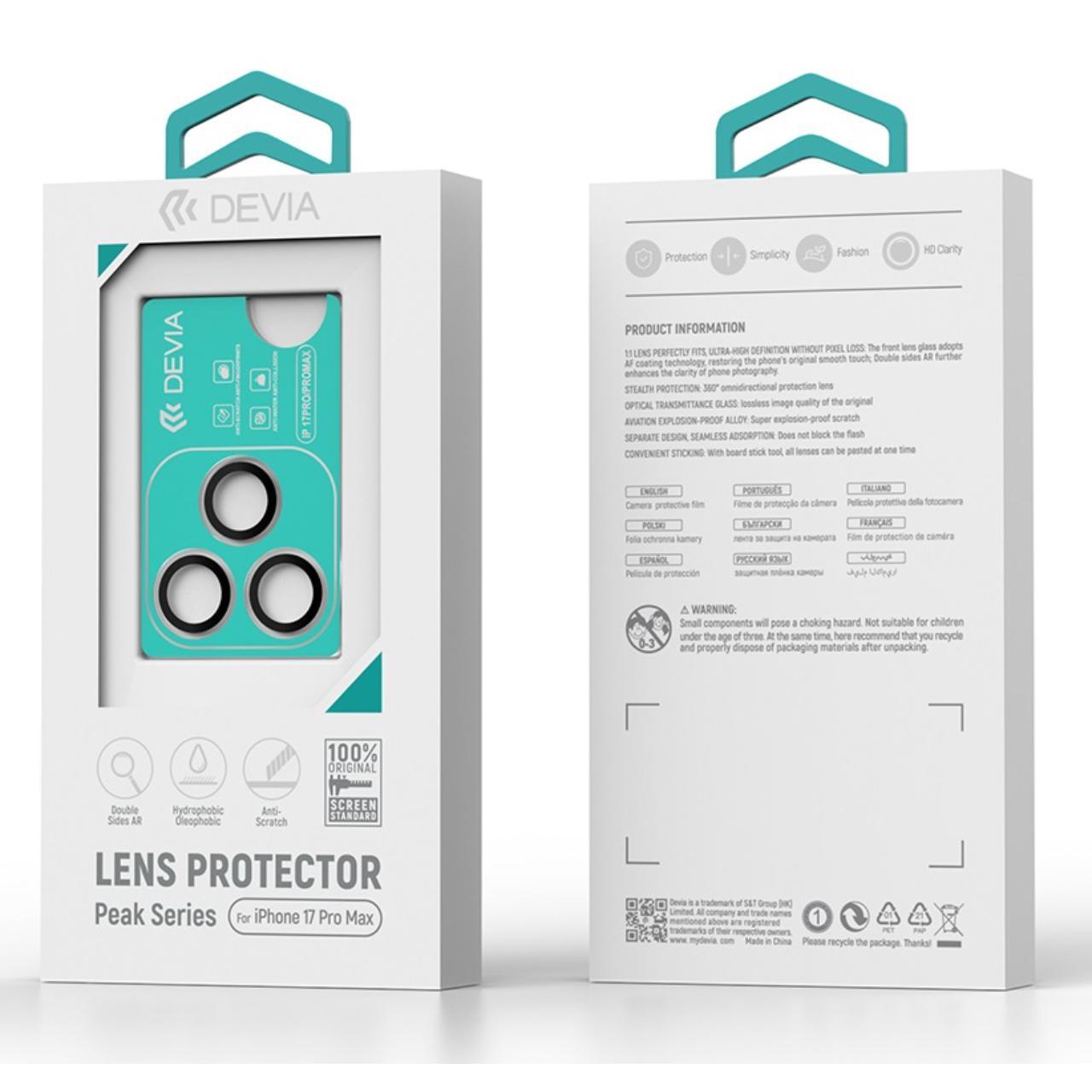 Devia Folie Sticla Camera Peak Series Crystal iPhone 17 Pro/ 17 Pro Max, Transparent, pachet de 3 buc
