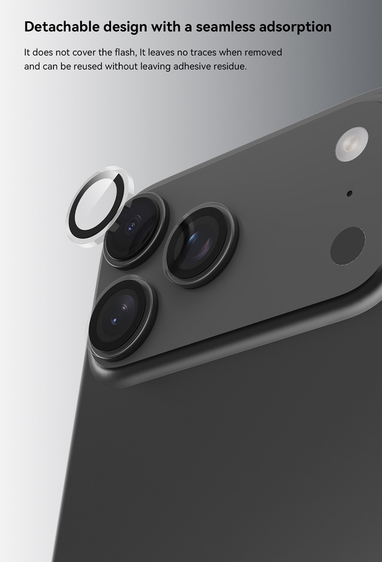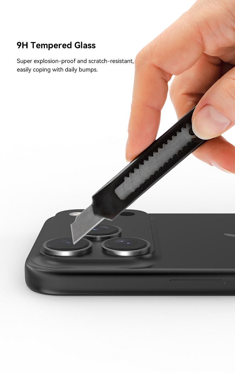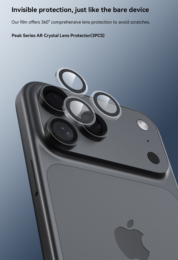 Folie Sticla Camera Peak Series Crystal iPhone 17 Pro/ 17 Pro Max de la Devia, este fabricata din sticla premium cu marginile realizate din policarbonat (transparent) si ofera o protectie suplimentara impotriva zgarieturilor si murdariei.