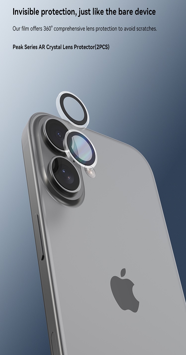 Folie Sticla Camera Peak Series Crystal iPhone 17 de la Devia, este fabricata din sticla premium cu marginile realizate din policarbonat (transparent) si ofera o protectie suplimentara impotriva zgarieturilor si murdariei.