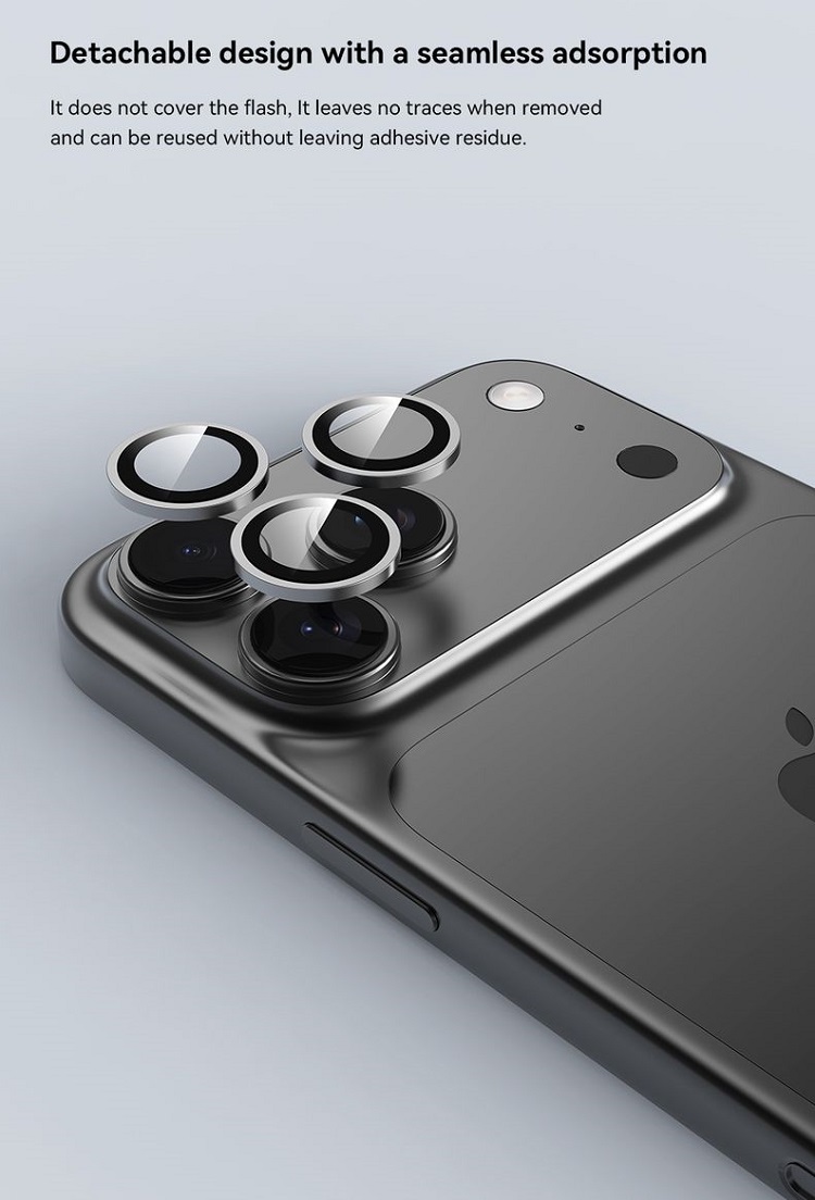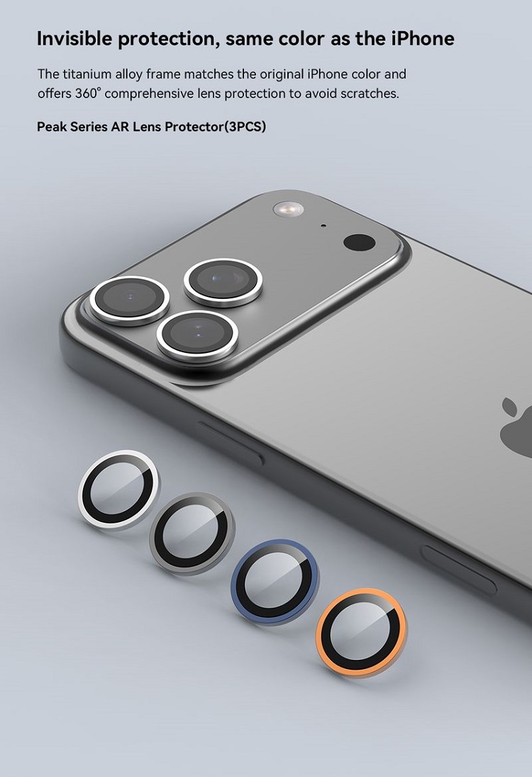 Folie Sticla Camera Peak Series iPhone 17 Pro/ 17 Pro Max de la Devia, este fabricata din sticla premium cu o margine din aliaj de titan si ofera o protectie suplimentara impotriva zgarieturilor si murdariei.