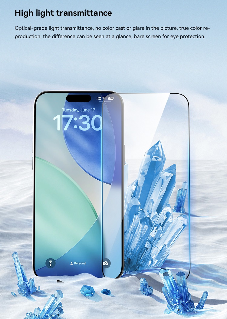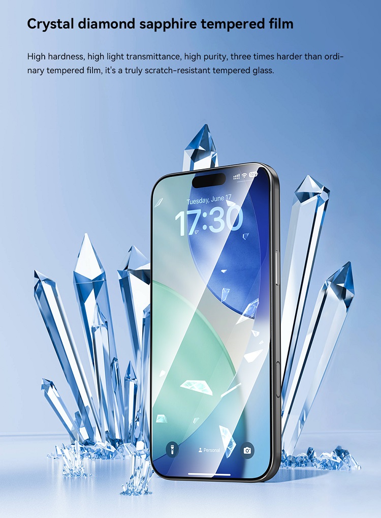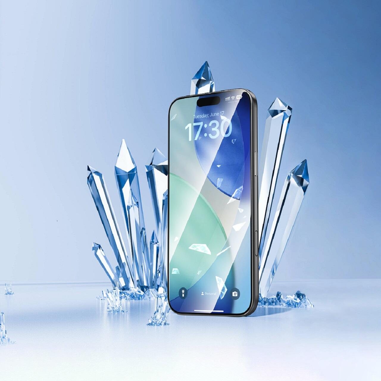 Folia Sticla Van Series Crystal Diamond iPhone 17 Pro Max se potriveste cu ecranul telefonului dumneavoastra si ofera rezistenta la zgarieturi si amprente.