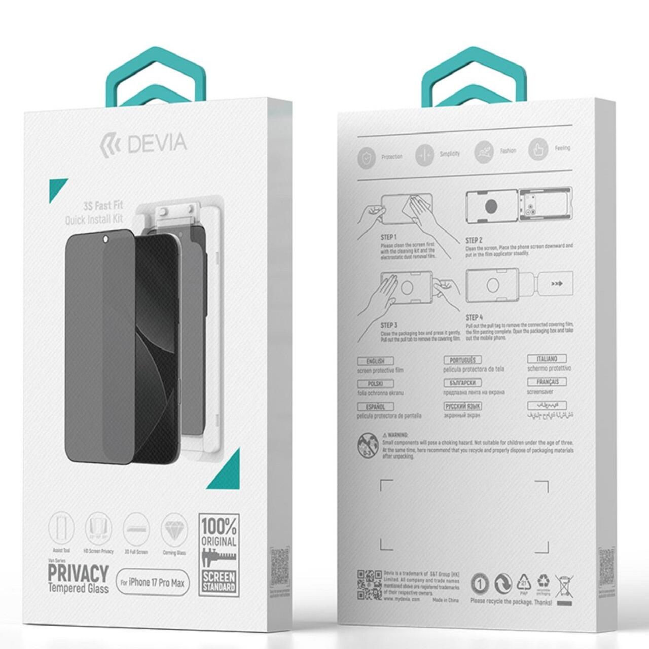 Devia Folie Sticla Privacy premium cu aplicator inclus Van Series, Full Screen, iPhone 17 Pro Max