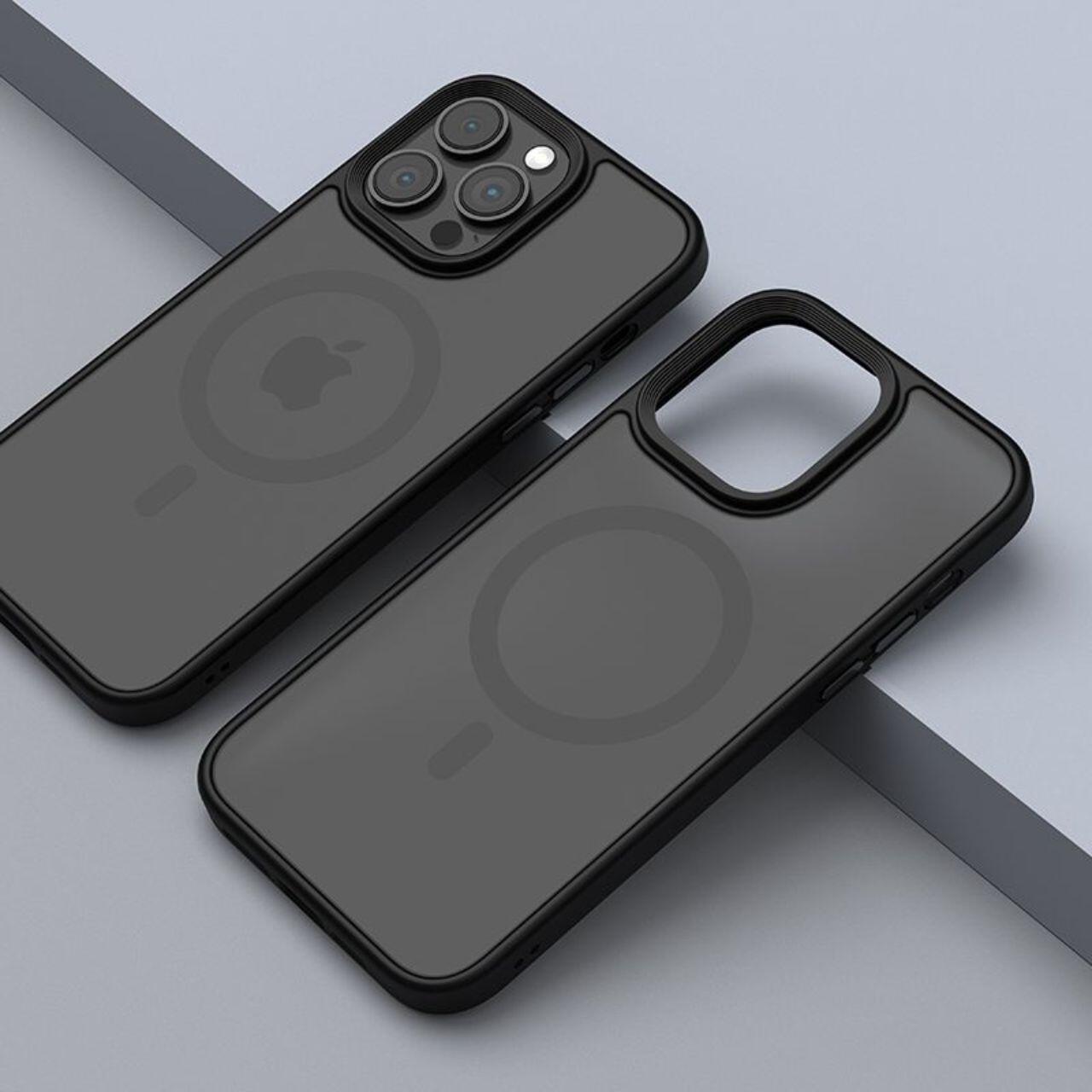 Husa Pino Series Magnetic Shockproof pentru iPhone 15 Pro Max, are spatele dur realizat din Policarbonat si marginile flexibile din TPU silicon. Husa este semi-transparenta pe spate si are marginile negre, ce ofera o priza buna in mana, dar si un design deosebit.