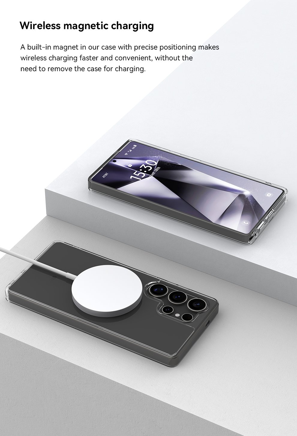In plus, husa este compatibila cu incarcarea wireless, astfel aceasta permite incarcarea rapida si conexiuni sigure la o gama variata de accesorii.