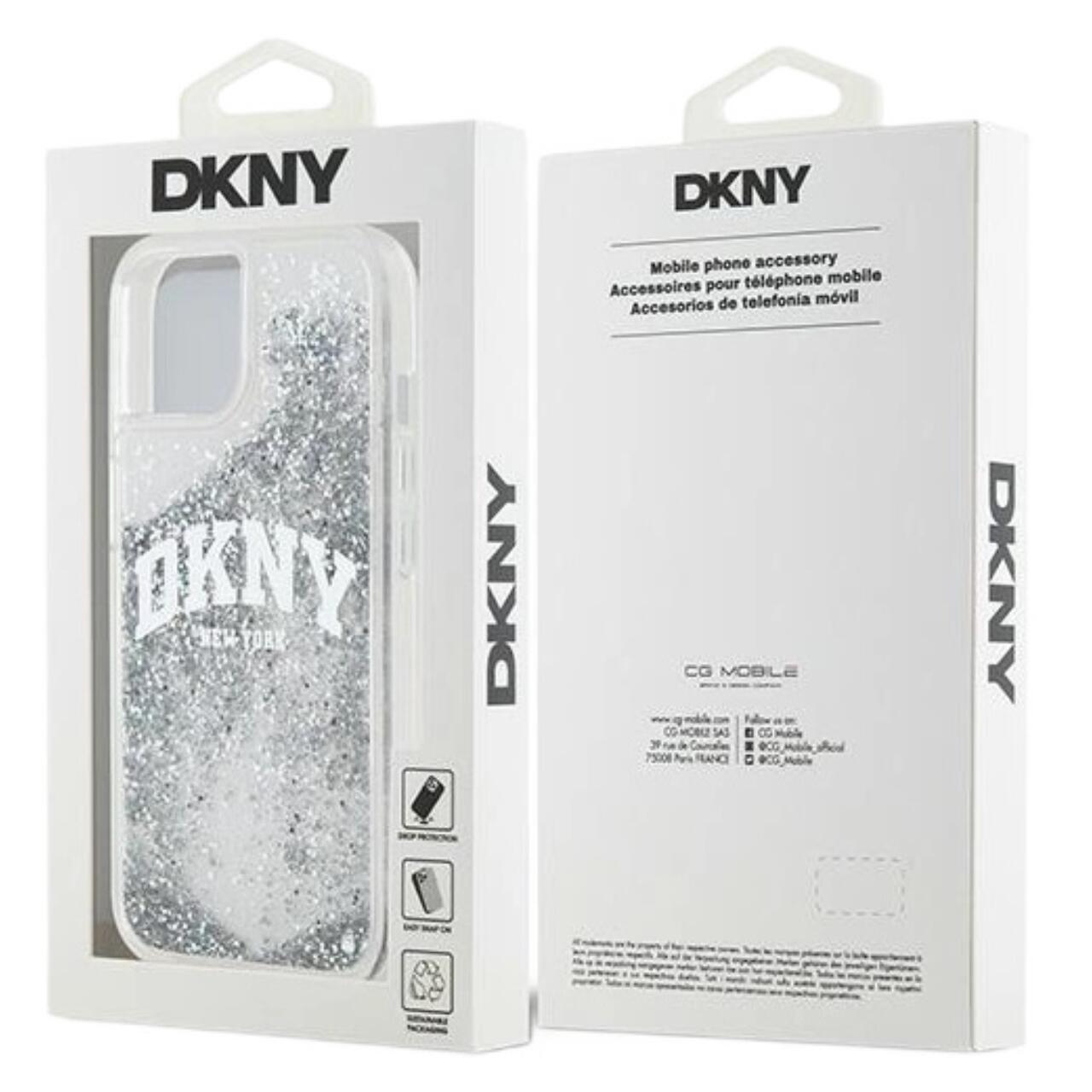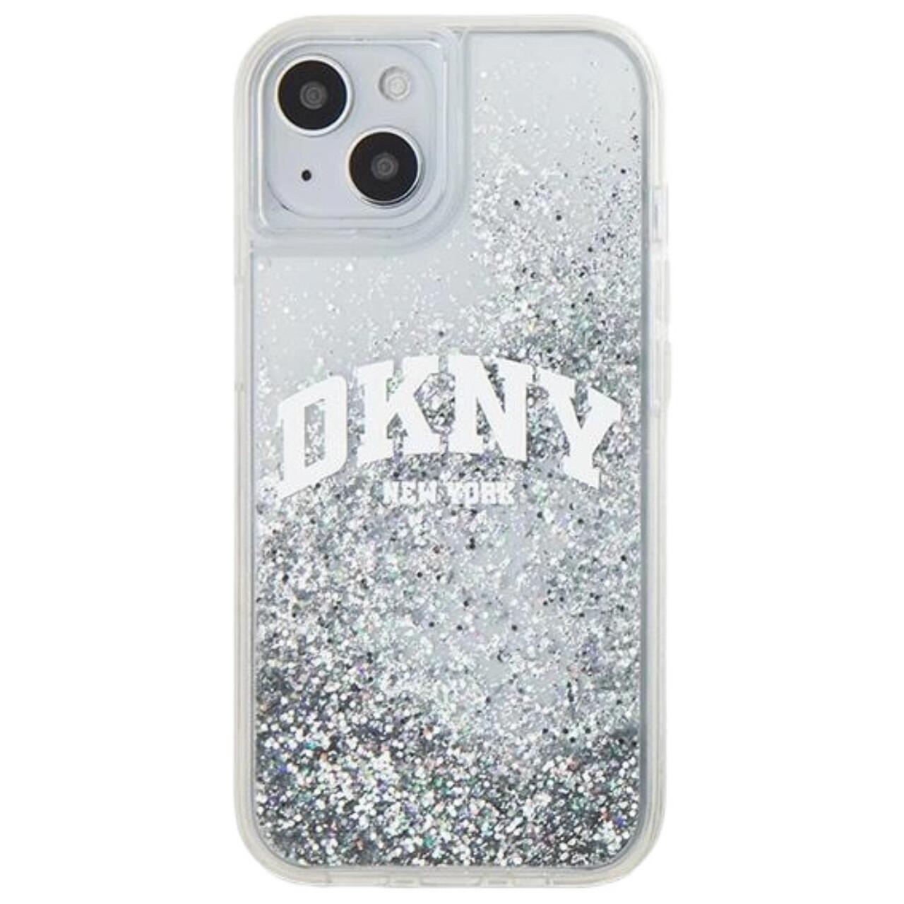 DKNY Husa Liquid Glitter Big Logo iPhone 15 / 14 / 13 Alb