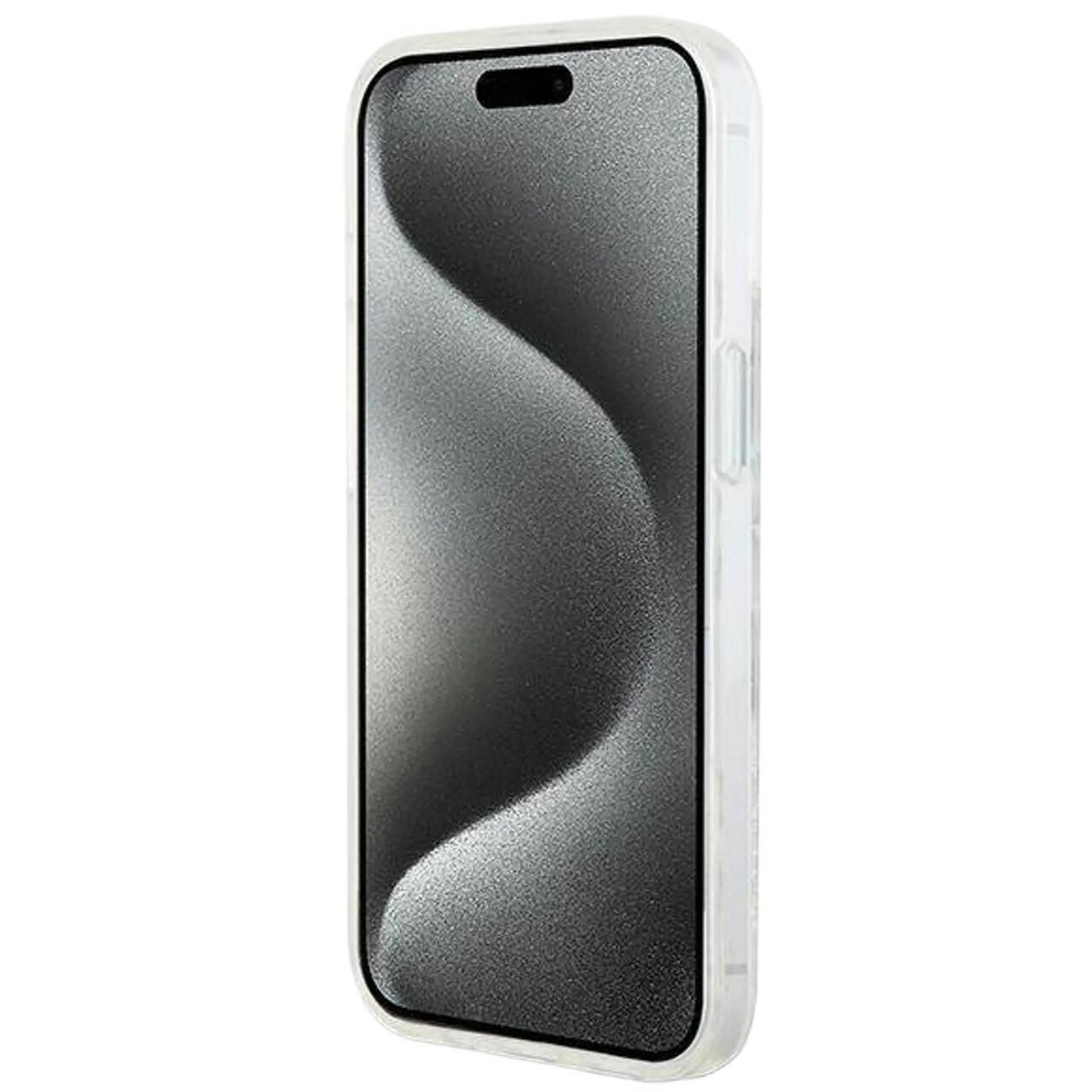 Husa Liquid Glitter Multilogo iPhone 15 / 14 / 13 de la DKNY, designul inovator al husei se bazeaza pe poliuretan durabil, care asigura rezistenta la uzura de zi cu zi, iar in interior un sclipici lichid unic se revarsa atunci cand telefonul este inclinat, formand o iluzie eficienta de cascada.