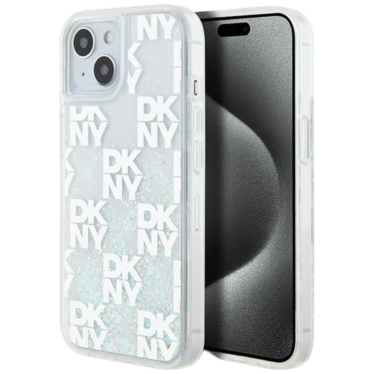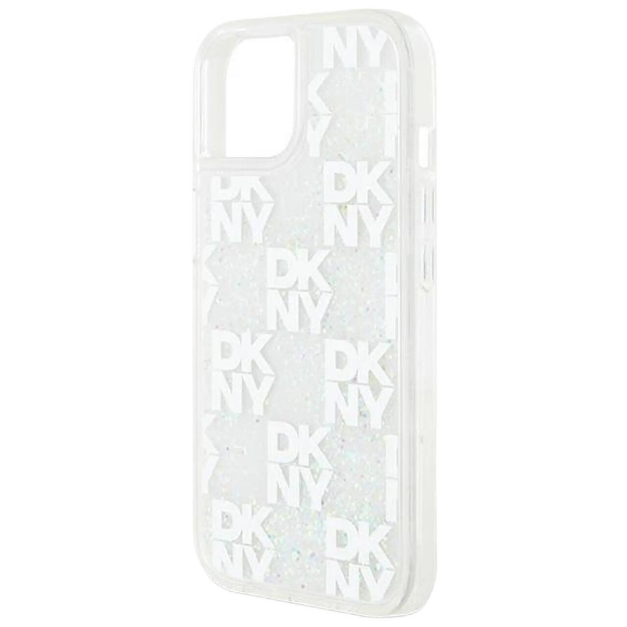 DKNY Husa Liquid Glitter Multilogo iPhone 15 / 14 / 13 Alb