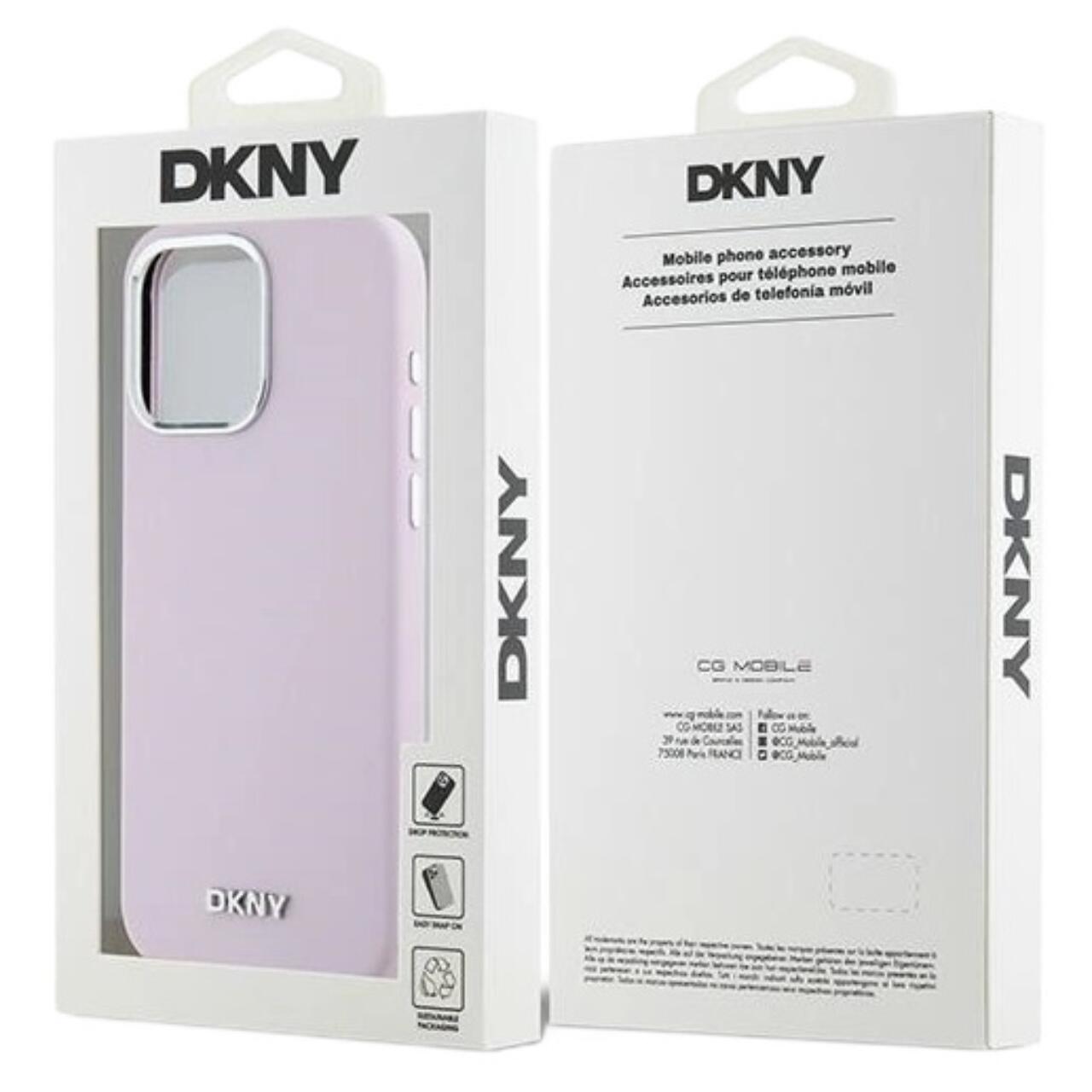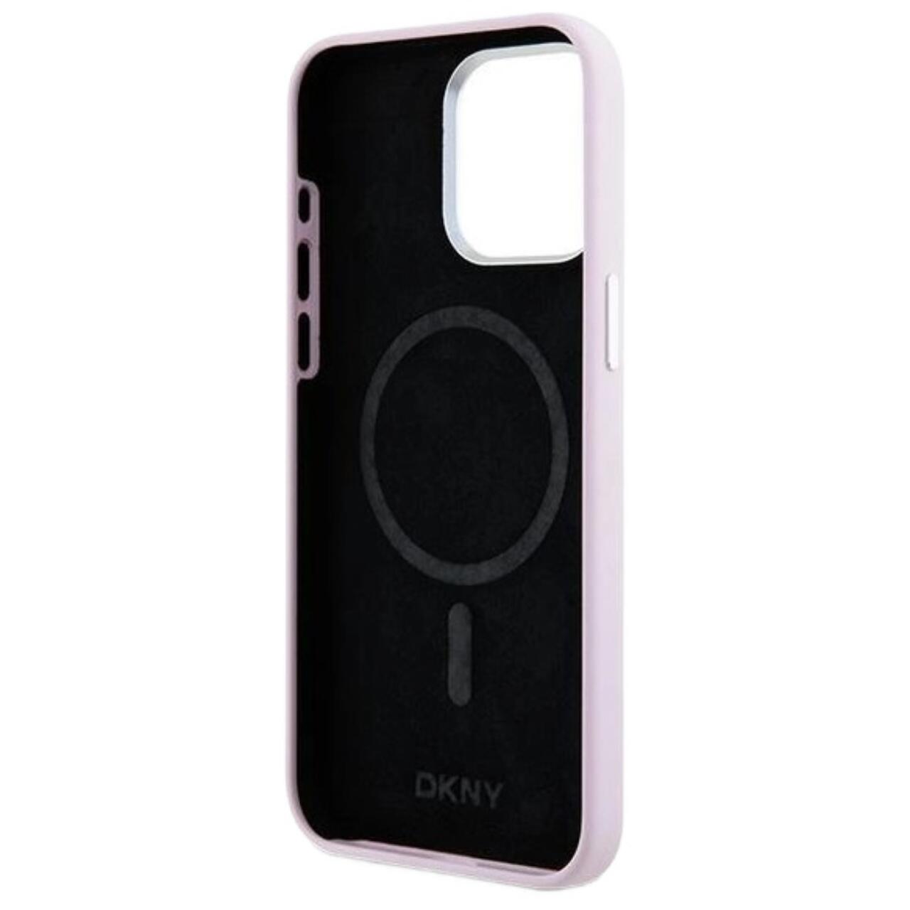 DKNY Husa Liquid Silicone Small Metal Logo MagSafe iPhone 14 Pro Roz