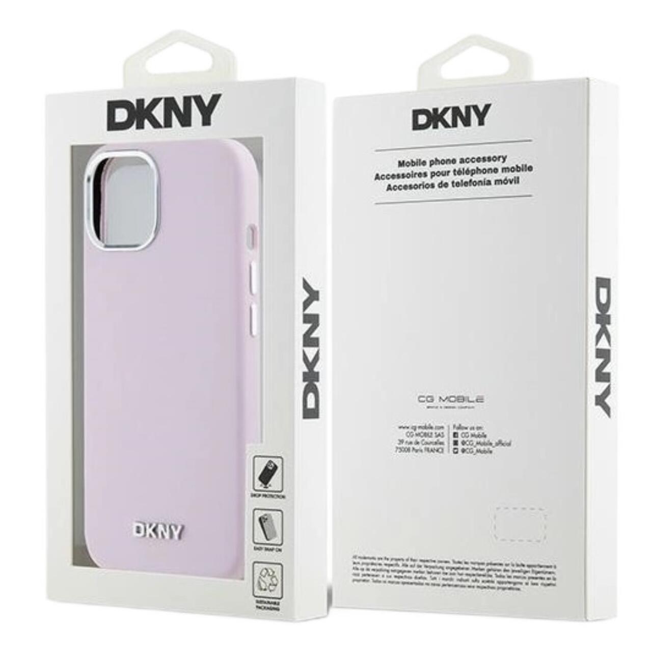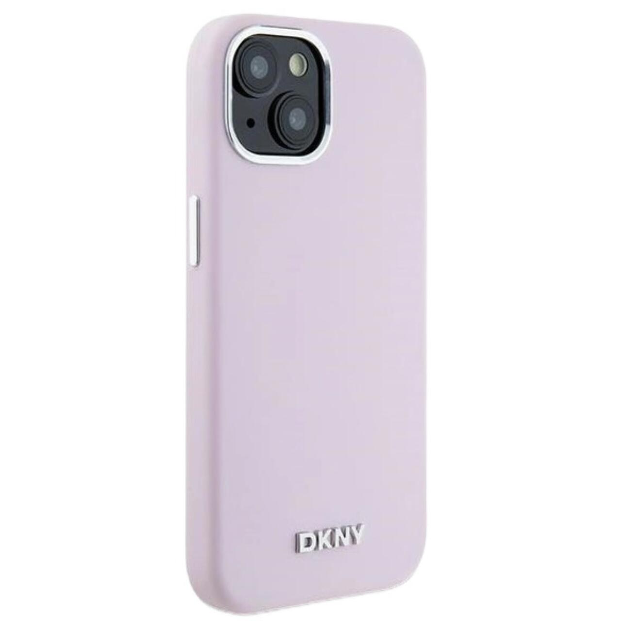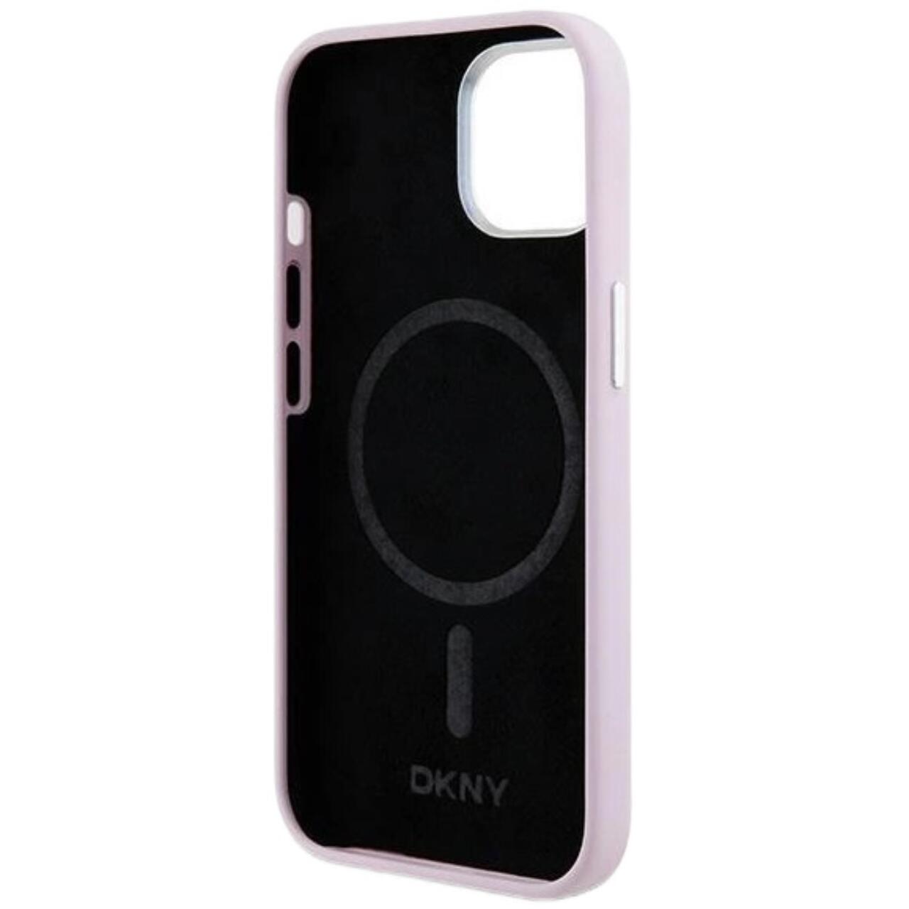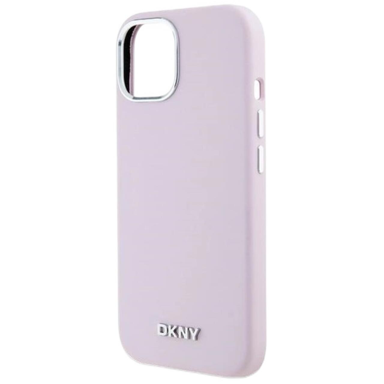 DKNY Husa Liquid Silicone Small Metal Logo MagSafe iPhone 15 / 14 / 13 Roz