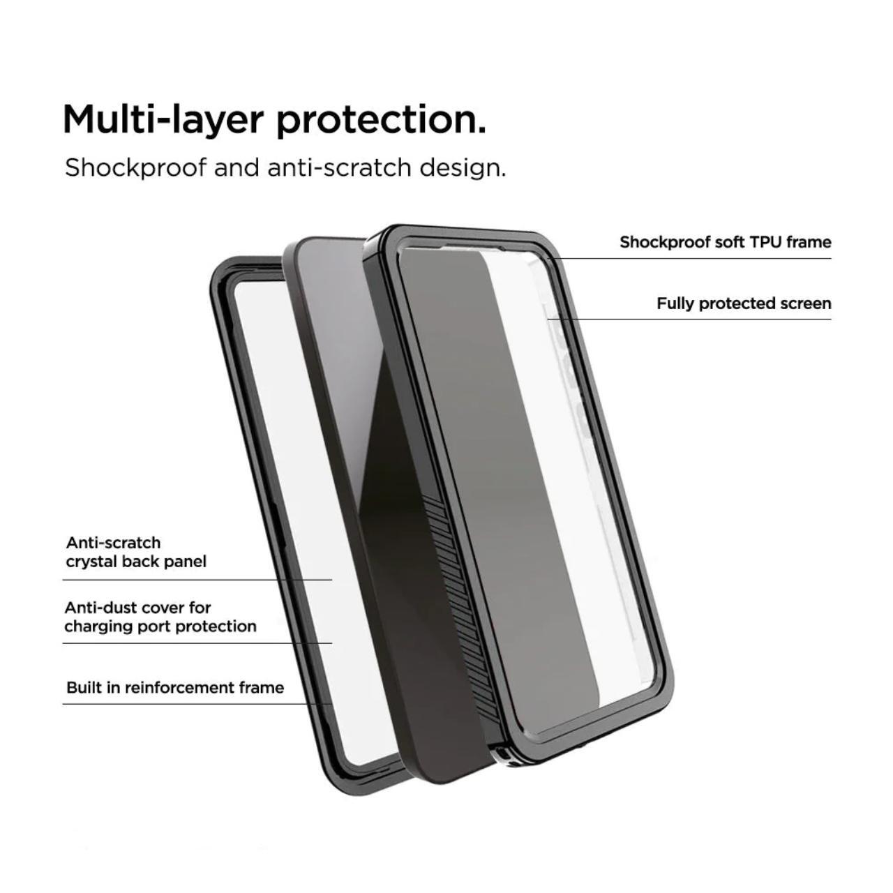 Husa Avalanche pentru Samsung Galaxy S24 de la Eiger, ofera cele mai inalte niveluri de protectie pe tot parcursul anului pentru telefonul dumneavoastra, a fost facuta pentru a rezista pana la 30 de minute sub apa la o adancime de 1 m/3ft si pentru a gestiona scaderi de pana la 2m/6ft.
