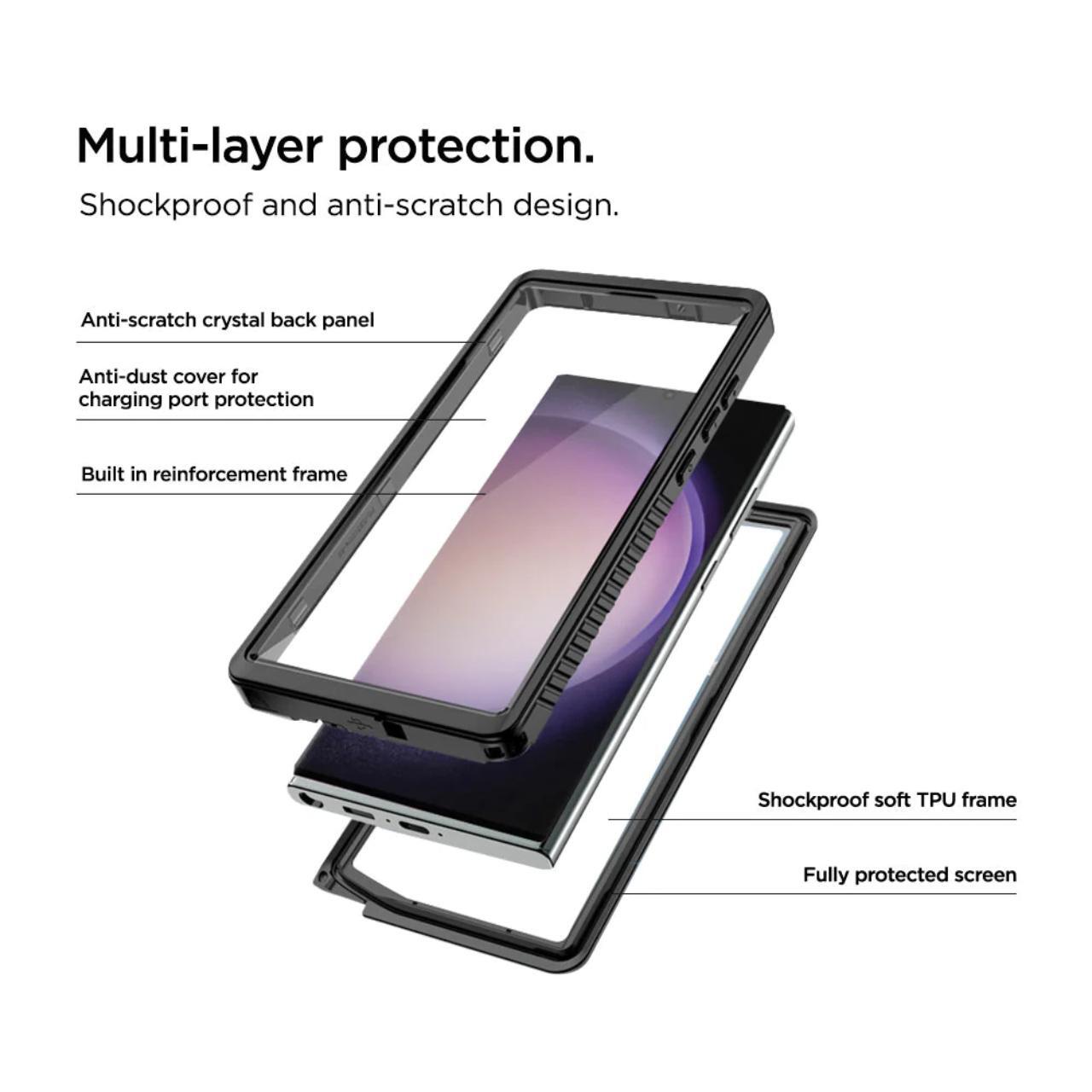 Husa Avalanche pentru Samsung Galaxy S24 Ultra de la Eiger, ofera cele mai inalte niveluri de protectie pe tot parcursul anului pentru telefonul dumneavoastra, a fost facuta pentru a rezista pana la 30 de minute sub apa la o adancime de 1 m/3ft si pentru a gestiona scaderi de pana la 2m/6ft.