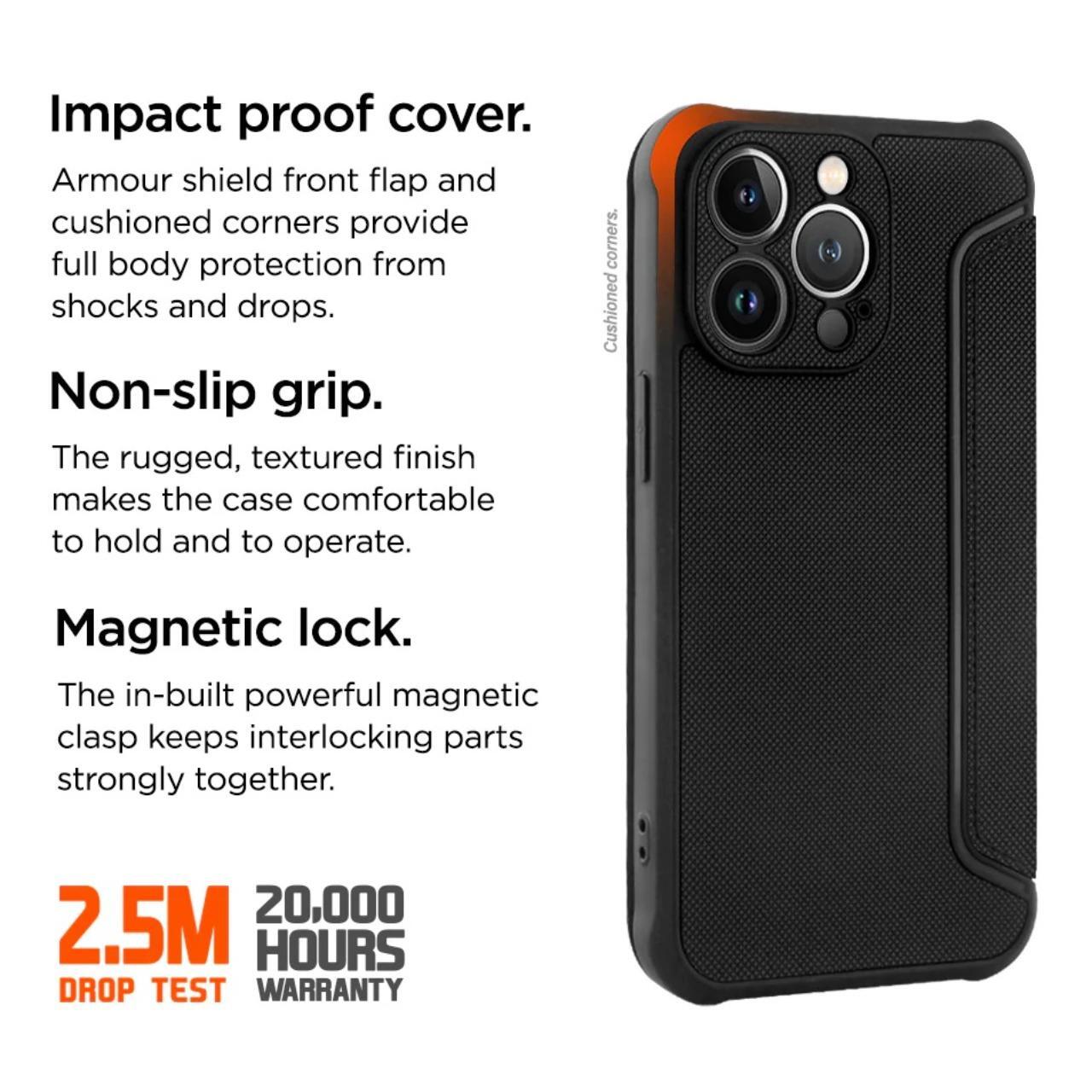 Husa North Folio Case iPhone 14 Pro Mx Negru de la Eiger, aceasta husa flip ofera telefonului tau un aspect unic si elegant, oferind in acelasi timp protectie impotriva zgarieturilor, loviturilor si prafului.