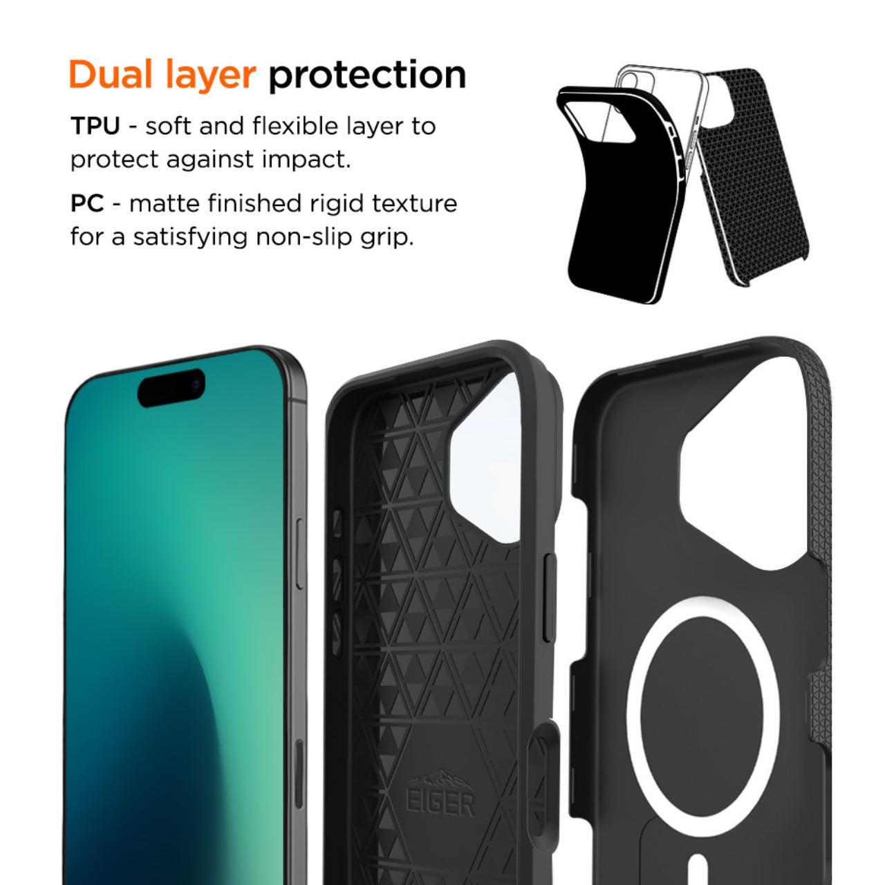 Husa North Magsafe GRS iPhone 17 de la Eiger, are un design cu doua straturi care va protejeaza dispozitivul de socuri si lovituri. Realizata din TPU si policarbonat este ideala pentru protectia telefonului dumneavoastra zi de zi.