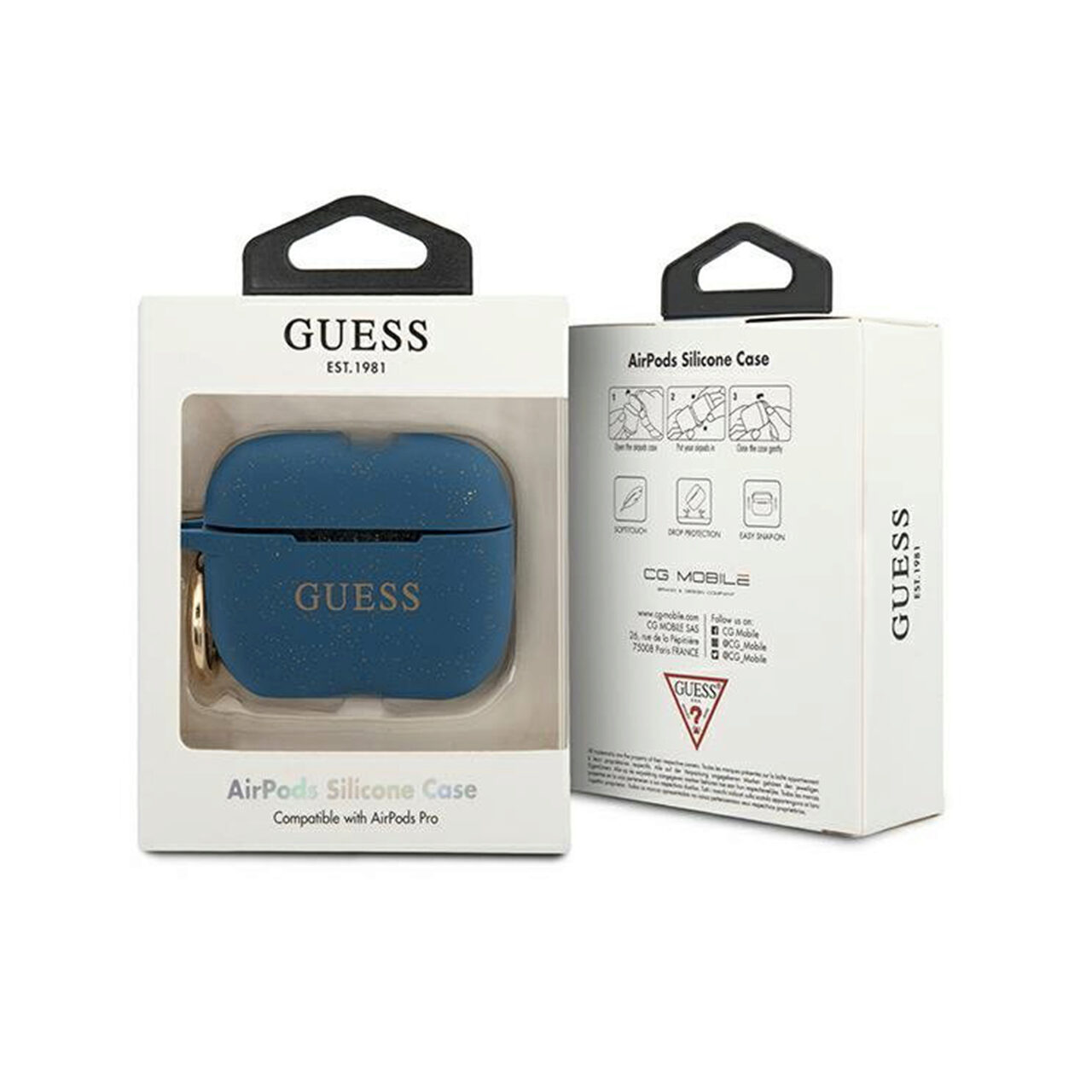 Guess Silicone Glitter Airpods Pro Case Blue (with key)
